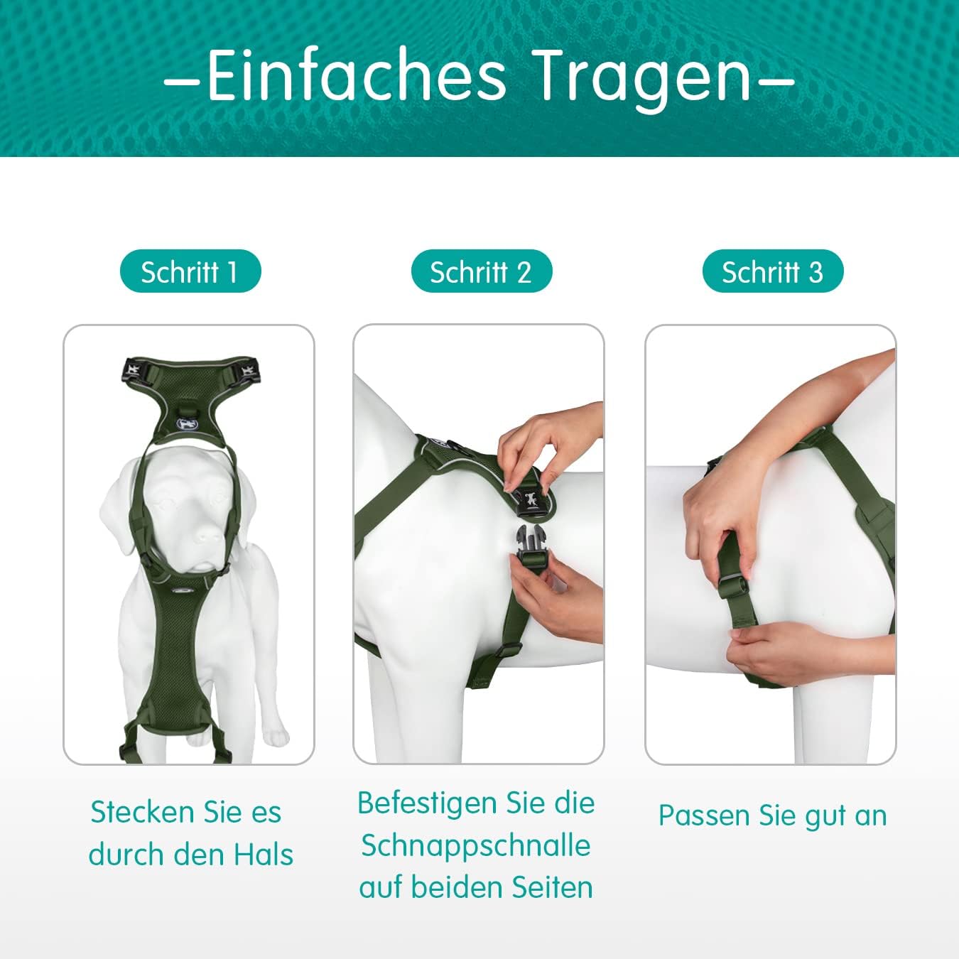 ECO-FRIENDLY: Ultra padded harness include recycled straps made from recycled water bottles. We use environmental friendly material that is highly durable designed to disperse the dog’s weight onto the chest to not choke the dog’s trachea.