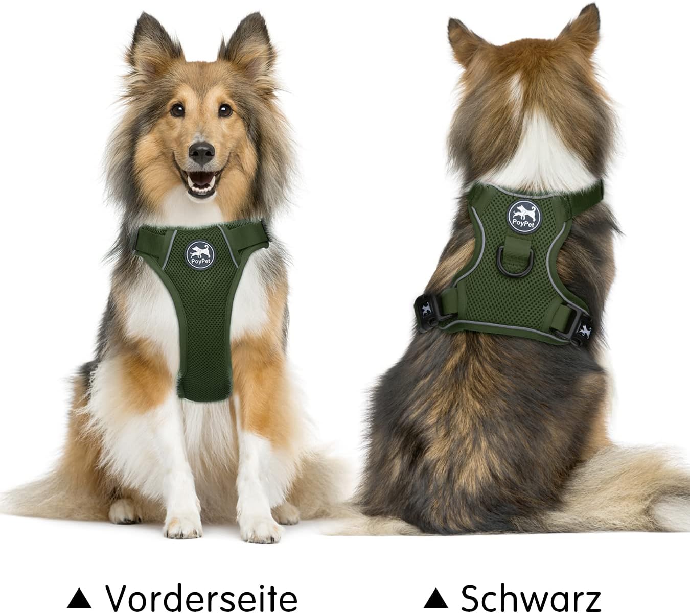 PoyPet Reflective Soft Breathable Mesh Dog Harness Choke-Free Double Padded Vest with Adjustable Neck and Chest(Military Green,M)