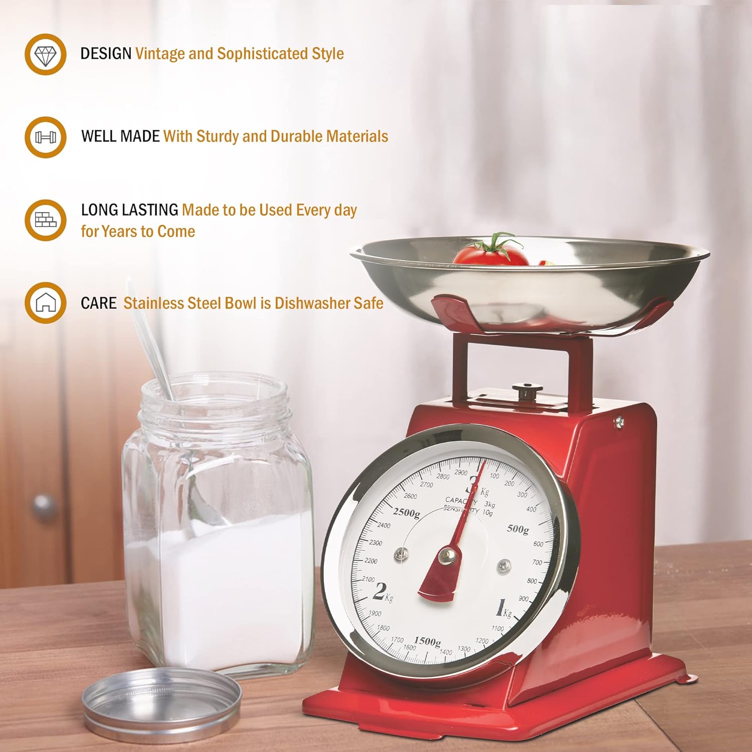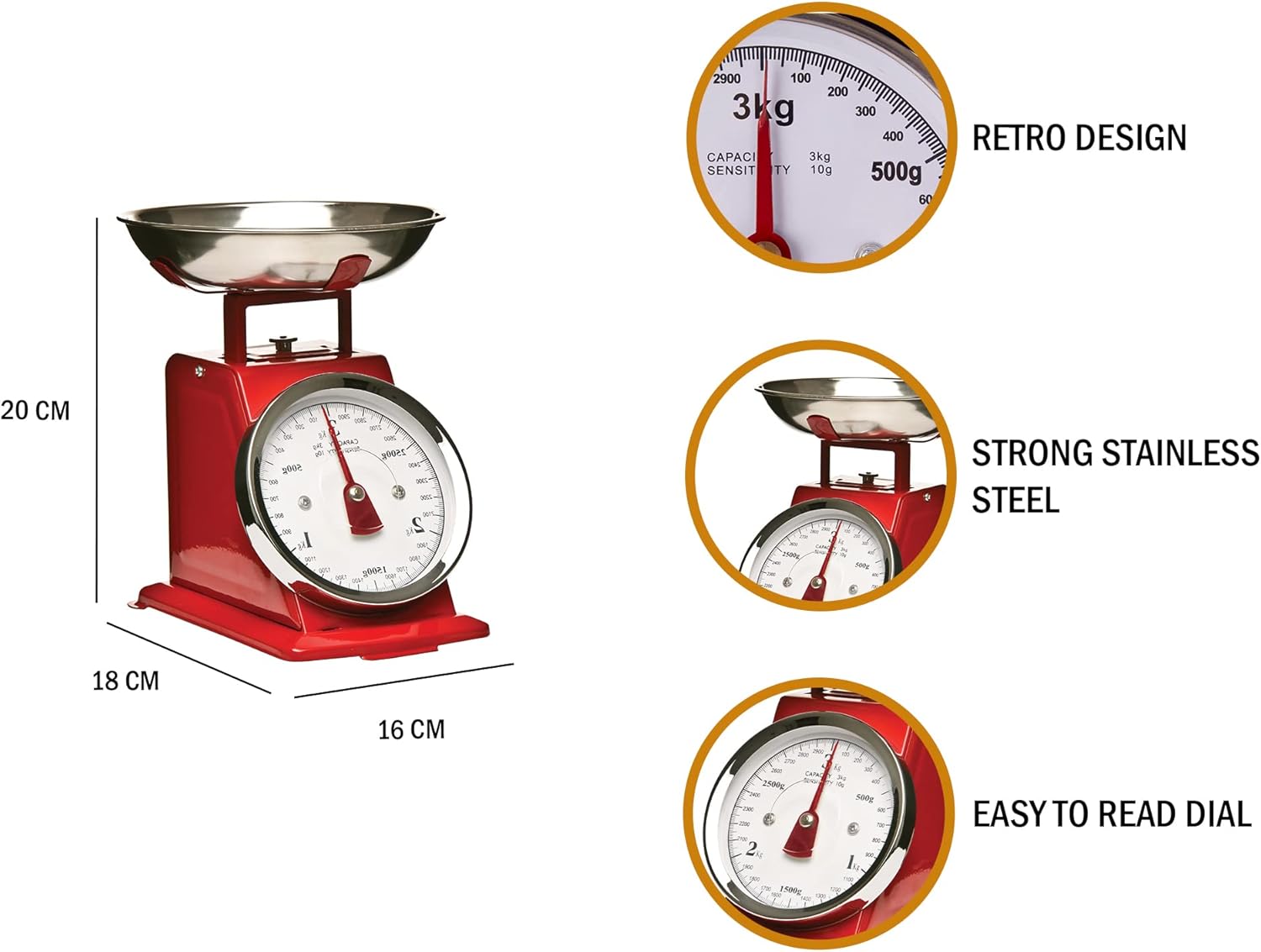 Easy to read kilogram dial, for accurately showing the weight of your food the retro big numbered dial makes it easy to read numbers
