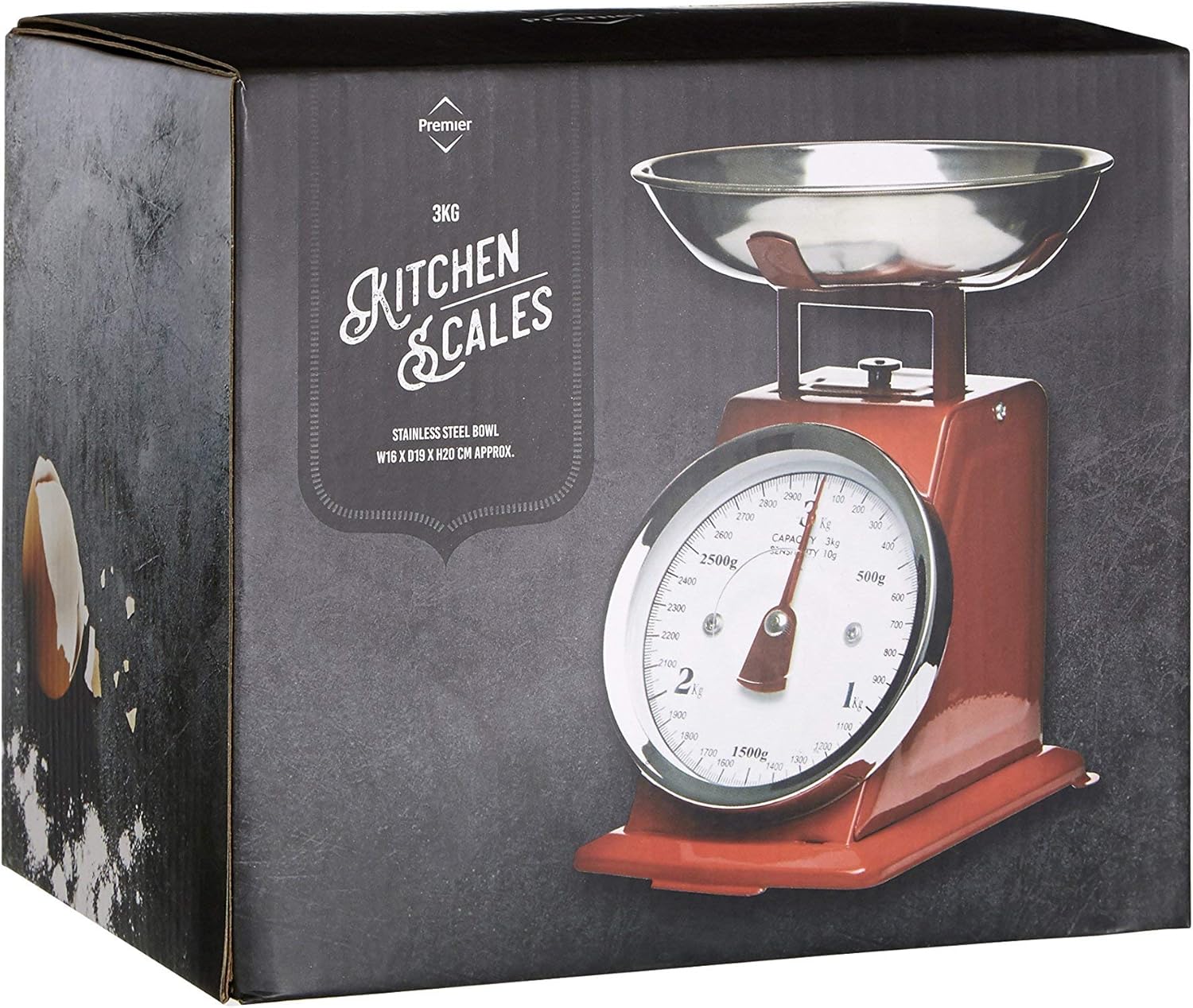 Premier Housewares 3KG Retro Kitchen Scale Weighing Scales Cooking Stainless Steel Kitchen Scales with Bowl Baking Scales Food Scales for Weighing