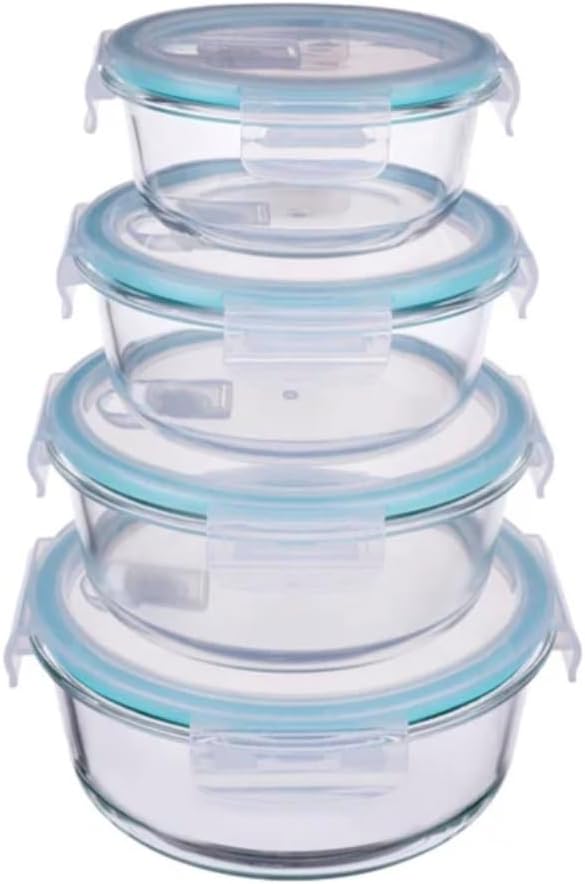 Premium Quality – Airtight Containers Crafted from high-quality, durable borosilicate glass, these food storage containers are both heat-resistant and freezer-safe. These premium 4-Pack of Round Glass Containers with Lids is the best choice for storing meals ahead of time, packing delicious lunches or taking leftovers on trips. Whether you’re looking for practical kitchen storage solutions like meal prep containers reusable or just want to keep your fridge neat, these airtight and leak proof glass food containers will help keep any type of food fresh and safe Versatile Size for every need Versatile Sizes for Every Need – With four different sizes in one pack, you’ll have the right container for everything, from leftovers to meal prep The Sizes included – 390ml, 630ml, 960ml, and 1400ml These glass food sets are designed for all your food storage needs Use them for storing leftovers, meal prep, keeping fruits, vegetables fresh, or as a lunch box Microwave Fridge and Dishwasher safe Reheat leftovers in the microwave without transferring to another dish. When it’s time to clean up, simply toss them in the dishwasher for a hassle-free experience. These kitchen storage containers save precious space in your kitchen, Keep your kitchen organized and clutter-free with these fridge storage containers Versatile Food Containers – These glass food sets are designed for all your food storage needs Use them for storing leftovers, meal prep, keeping fruits, vegetables fresh, or as a lunch box Customers like the quality and size of the food storage container. For example, they mention it’s sturdy, has a good range of sizes and is easy to clean. AI-generated from the text of customer reviews