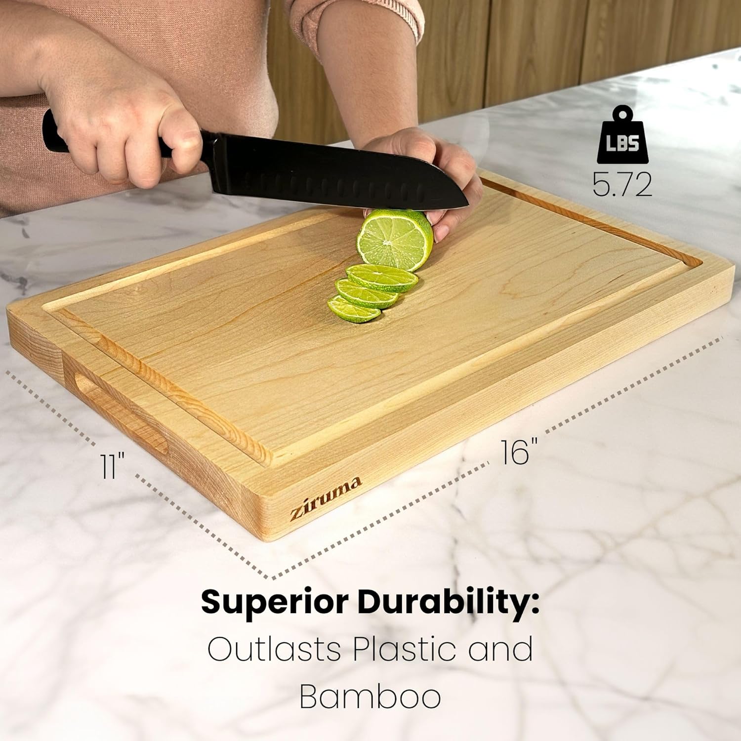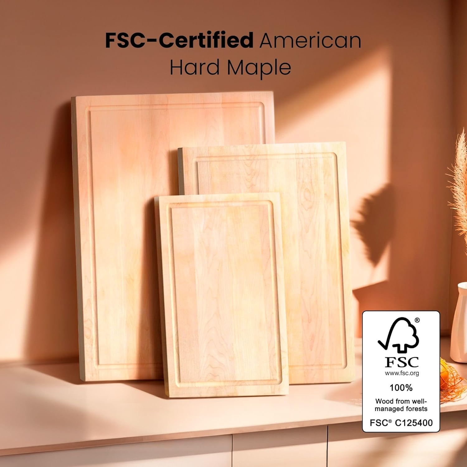 Premium Hard Maple Wood Chopping Board for Kitchen – FSC-Certified – Beeswax Conditioned, PFAS-Free, Large Size 43 cm by Ziruma