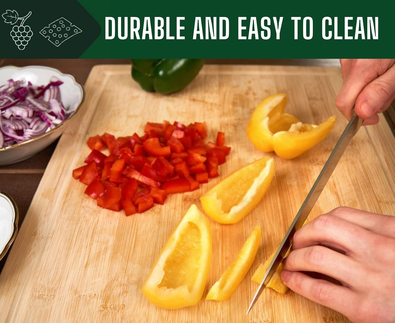 THE PERFECT GIFT OPTION. With its elegant design and practicality, our bamboo chopping board is an ideal gift or present choice for any occasion, delighting your friends and loved ones with its usefulness and aesthetic appeal.
