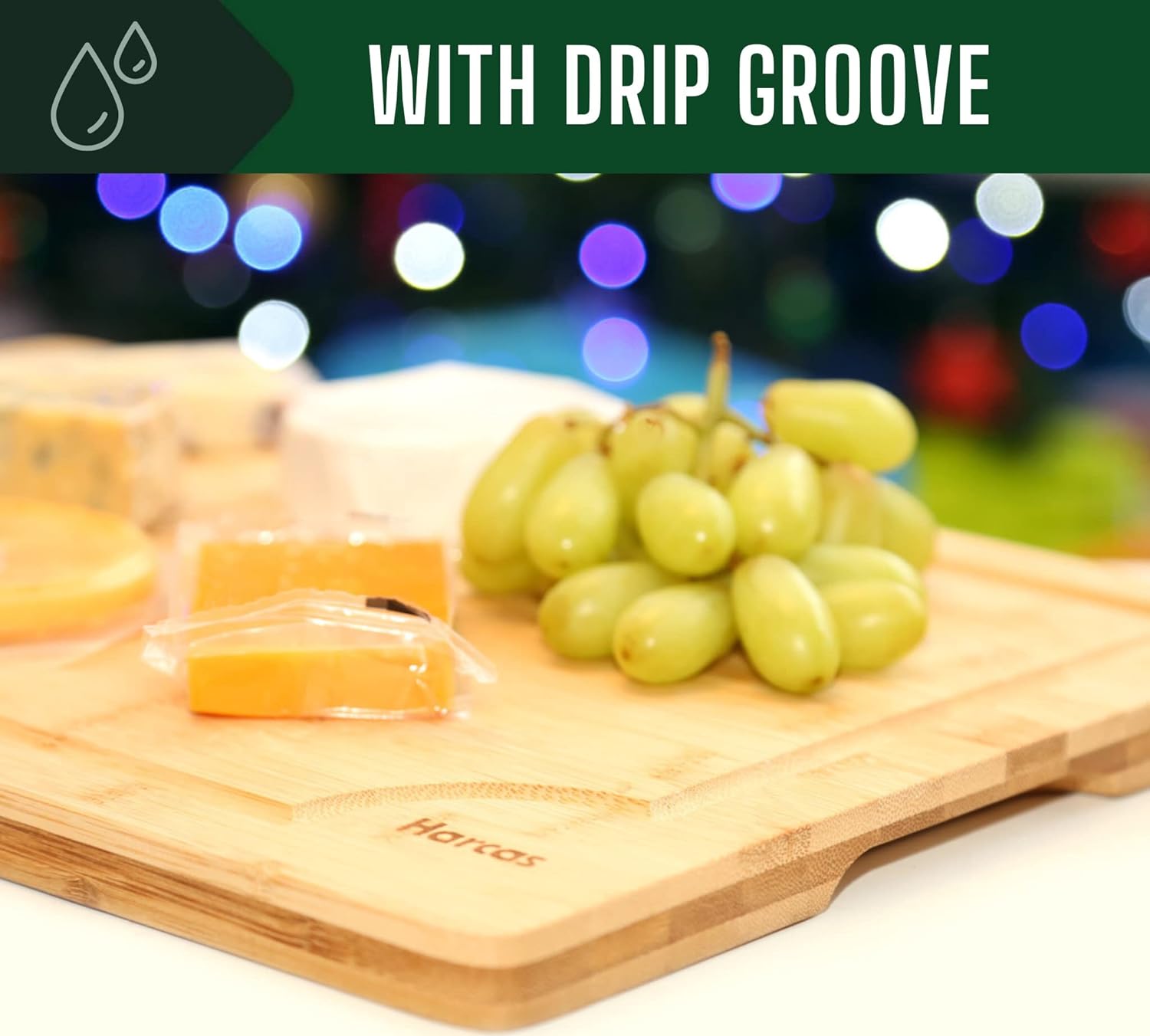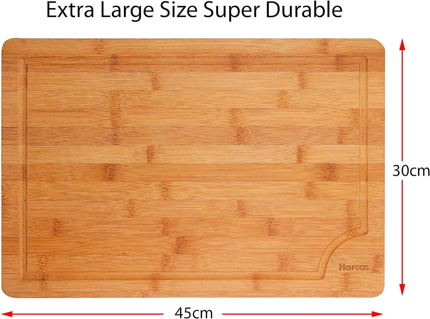 Premium Organic Bamboo Wooden Chopping Board by Harcas. Extra Large Size Cutting Board 45cm x 30cm x 2cm. Best for Meat, Vegetables, Tapas and Cheese. Professional Grade for Durability. Drip Groove