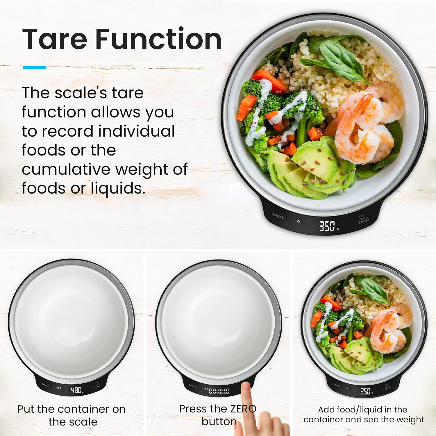 Tare function: The convenient TARE function allows you to measure multiple ingredients in one container easily. You can easily reset the weight to zero after each new ingredient to add and measure new ingredients – 3 x AAA 1.5V batteries included