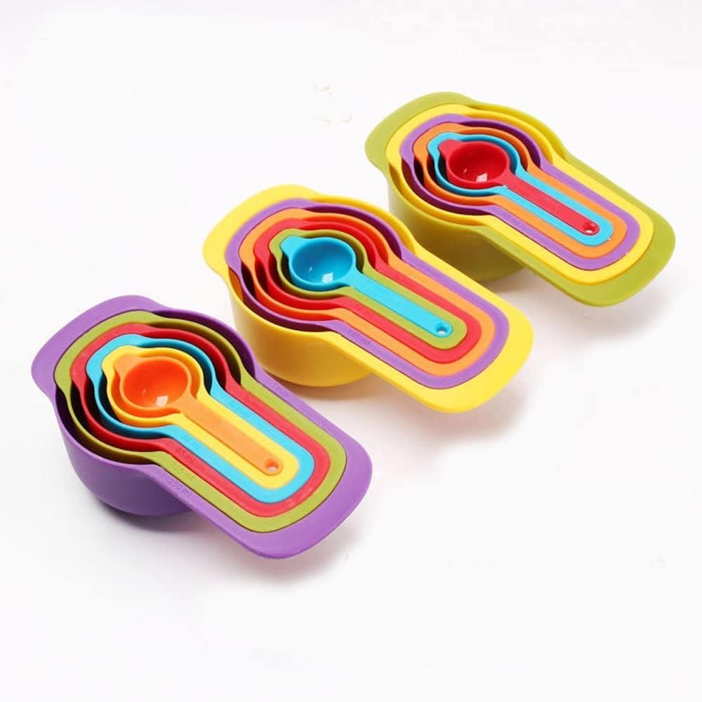 Quality Measuring Spoons: Our measuring spoon set is made of 100% high quality durable, lightweight and solid plastic material. The measuring cup set includes 6 measuring spoons: 1/2 Tablespoon (7.5ML/Gram) 1 Tablespoon (15ML/Grams) 1/4 Cup (60ML/Grams) 1/3 Cup (85ML/Grams) 1/2 Cup (125ML/Grams) 1 Cup (250ML/Grams)