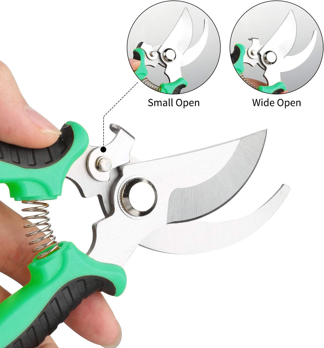 Pruning Shears Sharp Blade Bypass Hand Pruner – Garden Secateurs Professional High Carbon Alloy Steel Clipper for Branches Stems Tree Trimmer (Green)