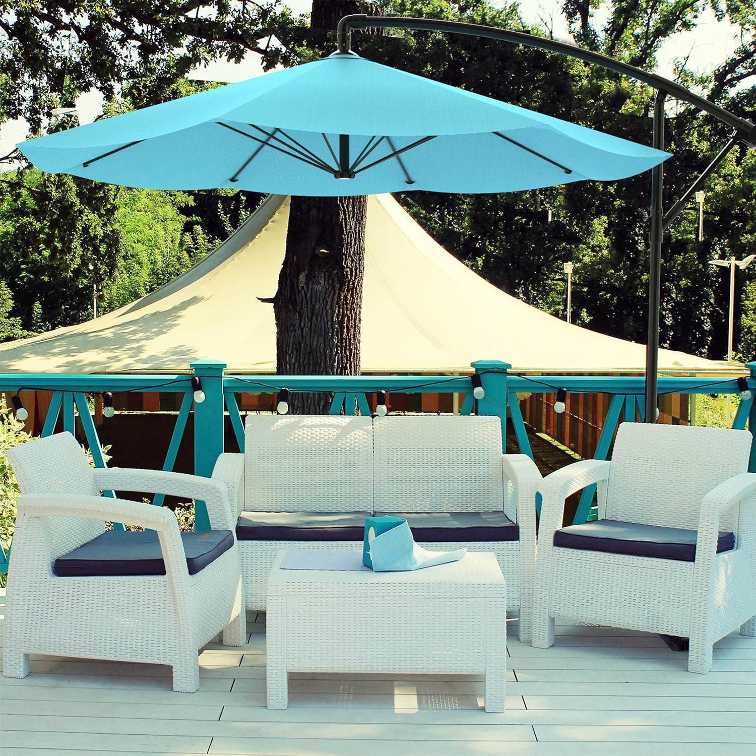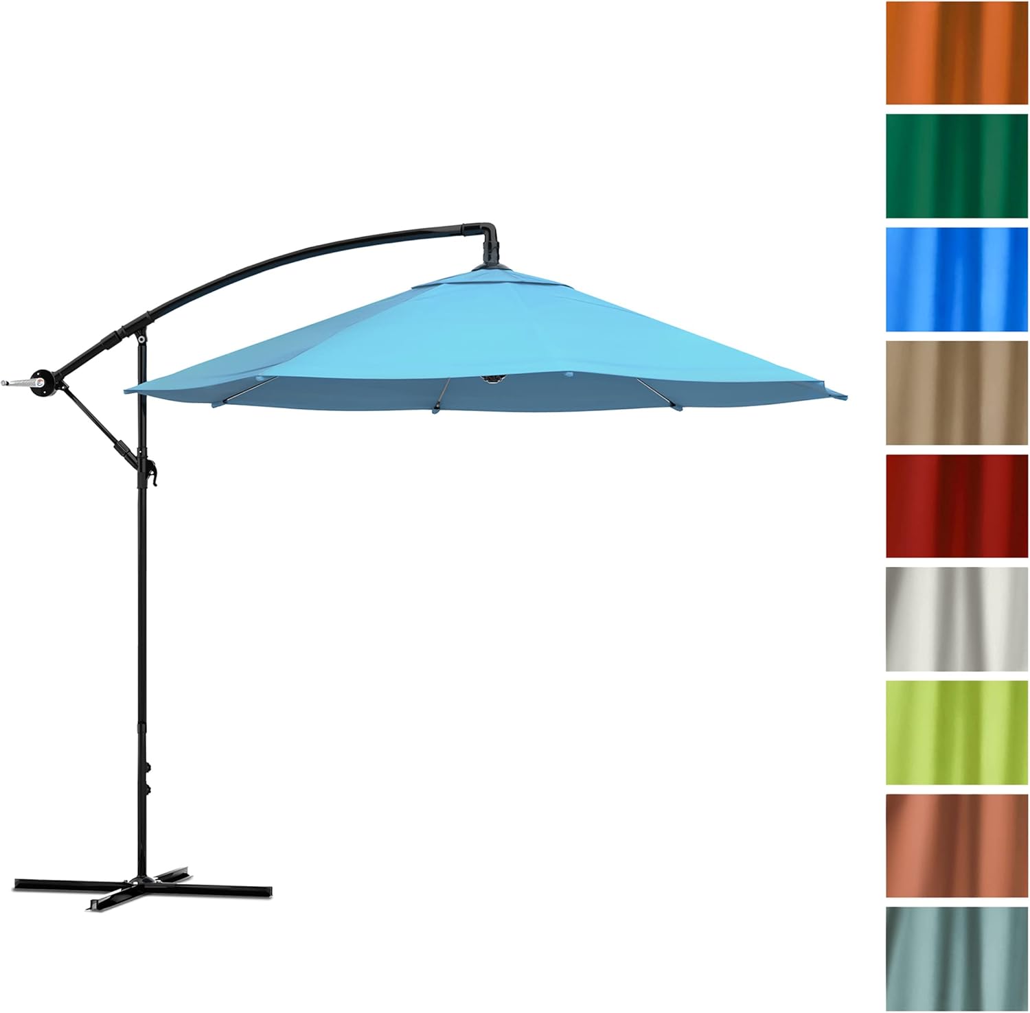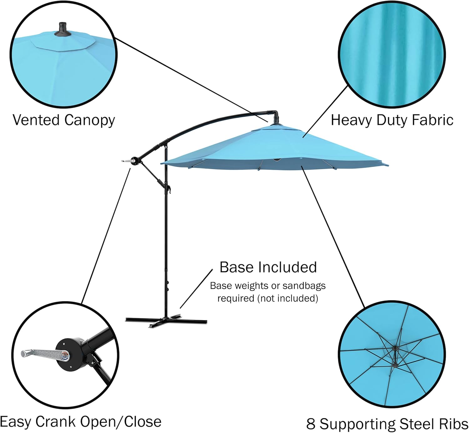Pure Garden Offset Aluminum Hanging Patio Umbrella, 10′, Blue