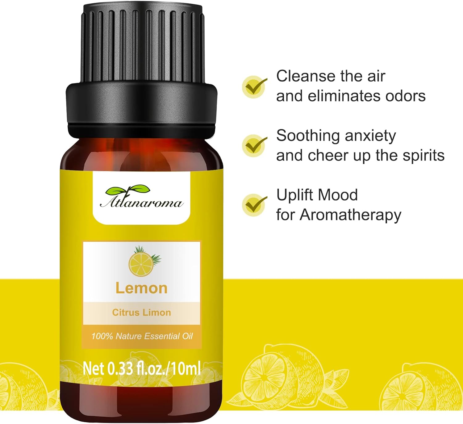 (as of [price_update_date] – DetailsOriginally native to Asia, the lemon tree wasn’t common in Europe until the 16th century. It is part of the evergreen family and reaches a height of about 20 feet. Lemon essential oil is known for its cleansing properties, and it is widely used in skin care and home cleaning solutions for these benefits.The uses of lemon essential oil include easing stress, elevating mood, strenthening the immune system, alleviating pain, and deodorization. Our Lemon essential oil is extracted from the peel of fresh lemons through steam extraction. Extract more and more fresh natural ingredients from fresh lemon.Lemon essential oil is a type of essential oil commonly used in aromatherapy. The essential oil can be diluted and applied directly to the skin or diffused into the air and inhaled. It is a common ingredient in various skin and aromatherapy products.DetailsBotanical Name: Citrus LimonOrigin: ChinaExtraction Method: Steam DistilledPlant Part Used: Peel of the lemonNote: Middle – TopAroma: fresh,zesty,citrusy flavor,uplifting aromaFamily: RutaceaeConsistency: ThinColor: ClearShelf Life: 2 YearsApplications Add a few drops of Lemon oil to pillows, bedding, or bottoms of feet for help gosleep. Apply couple of drops as a deeply moisturizing and aromatic agent in your skincare products and shampoos. Add 4-5 drops of Lemon essential oil to diffusers for floral and fresh air. Combine 7 drops with 1 tbsp of base oil for a massage to soothe sore joints and muscles.Dilution Chart1 Percent: 2 drops essential oil in 10ml base oil2 Percent: 4 drops essential oil in 10ml base oil3 Percent: 6 drops essential oil in 10ml base oil4 Percent: 8 drops essential oil in 10ml base oil5 Percent: 10 drops essential oil in 10ml base oil (PS:1ml 20 drops)
