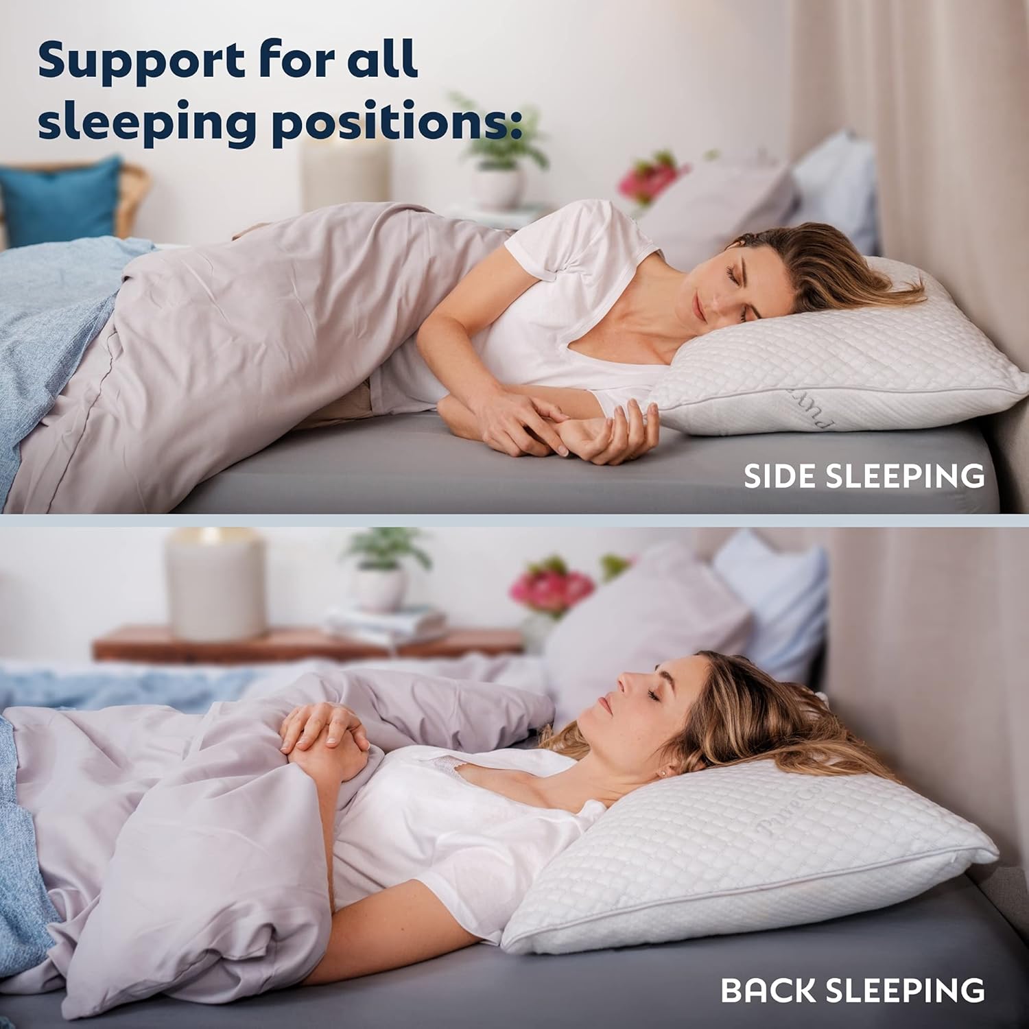 FULLY ADJUSTABLE: Our pillow for side sleepers, stomach sleepers, and back sleepers features a proprietary mix of shredded visco elastic memory foam, which you can add or remove to reach your ideal fill.