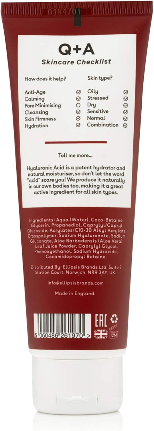 Q+A Hyaluronic Acid Hydrating Cleanser, uses Gentle and Smoothing Cleansing Agents which only Boost your Skin’s Moisturisation (125ml)