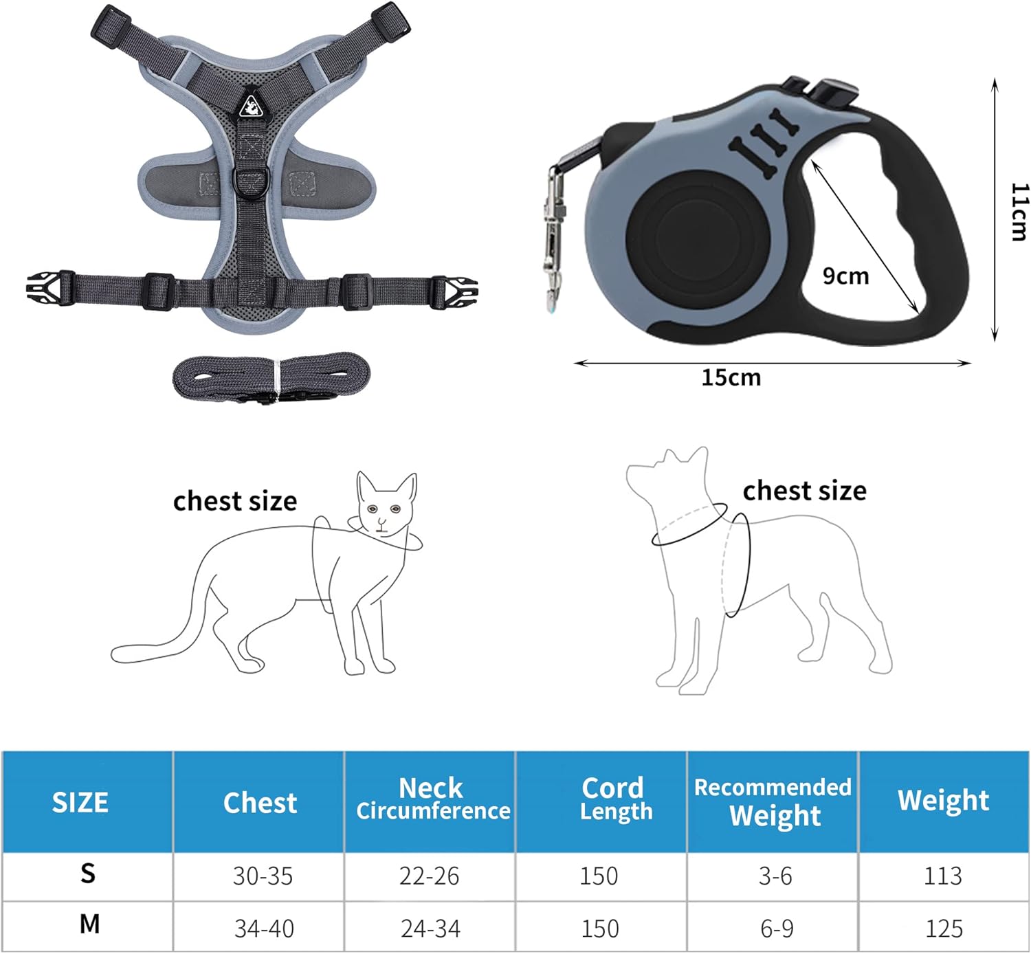 🐕🦺【Perfect Package】 – Package includes 1 cat leash, 1 leash and a self retractable dog leash, a set to meet all your needs. Perfect for walking, jogging, running, camping and hiking. To ensure that this carrier is more suitable for your cat or puppy. We strongly recommend that you measure your cat’s neck/chest circumference before purchasing this carrier.