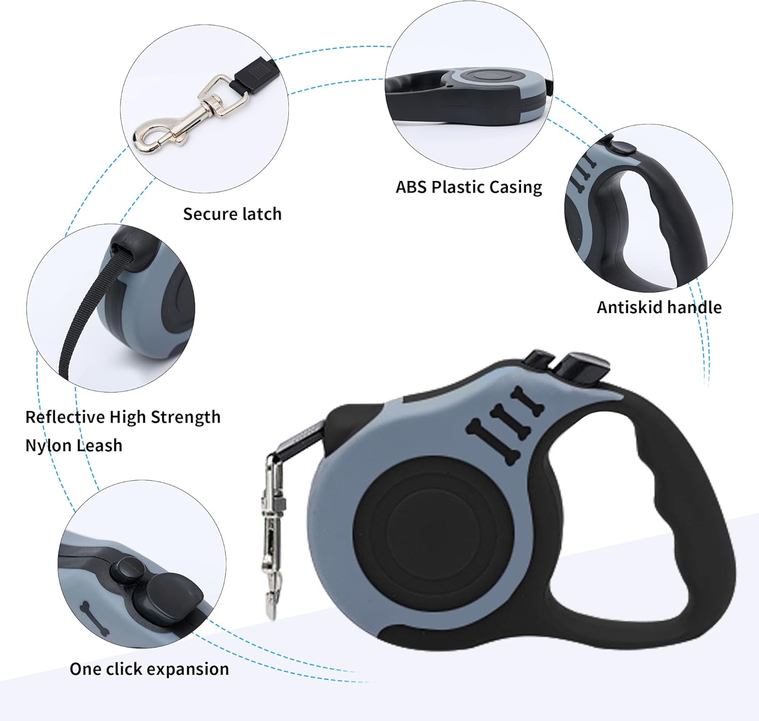🐕🦺【Reflective Design】- Durable extendable dog lead is made of strong nylon material and impact resistant ABS material. The reflective strap design of the carrier adds safety and visibility for dogs and their owners in the early morning or late at night.
