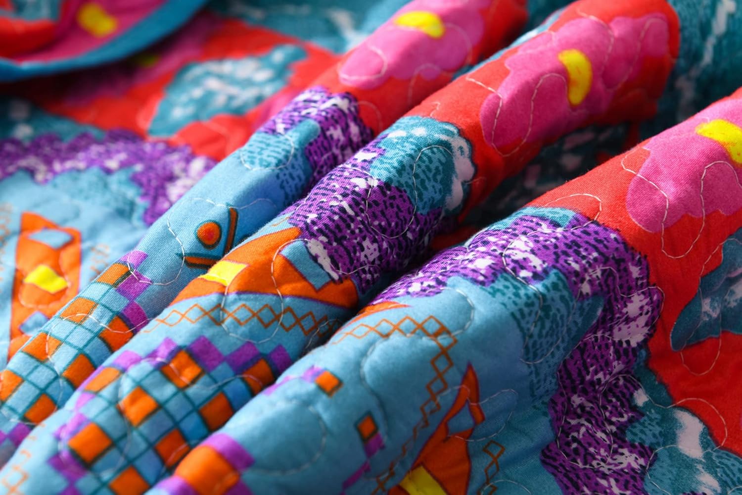 MATERIAL: Soft Cotton and Polyester fiber filler. Prewashed and Preshrunk Hypo-allergenic, vibrantly floral blue single bedspreads and throws.