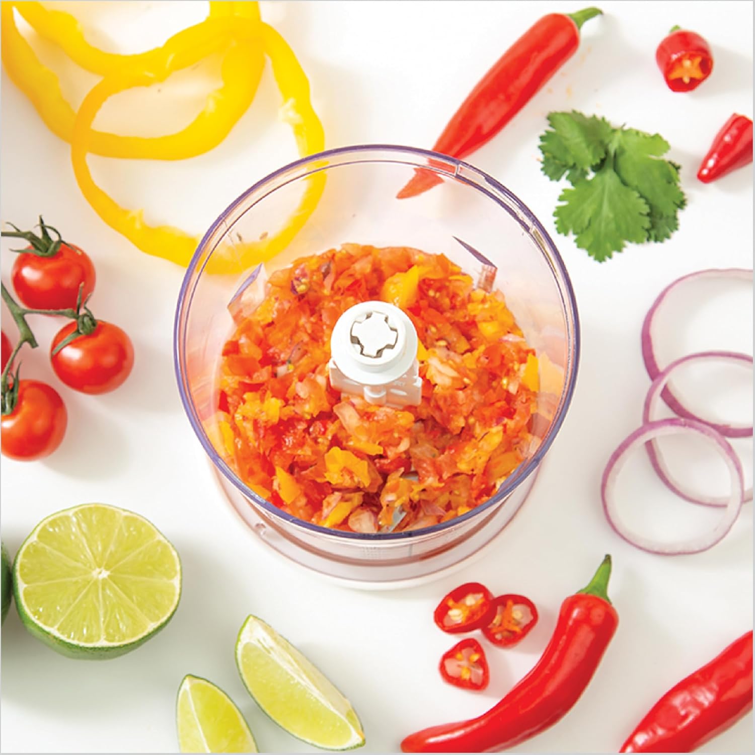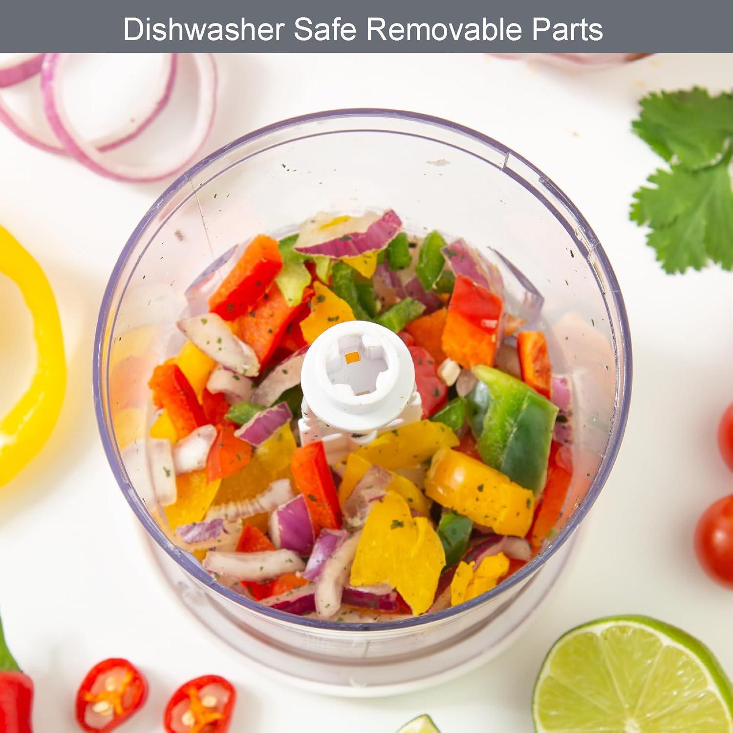 SHARP CUTTING BLADES – The stainless steel blades of the chopper are sharp and durable, allowing you to cut all kinds of fruit & veg, such as carrots, onions, tomatoes, celery and more! Make delicious side dishes, sauces, and purees knowing that you can rely on this chopper to cut up everything you need.