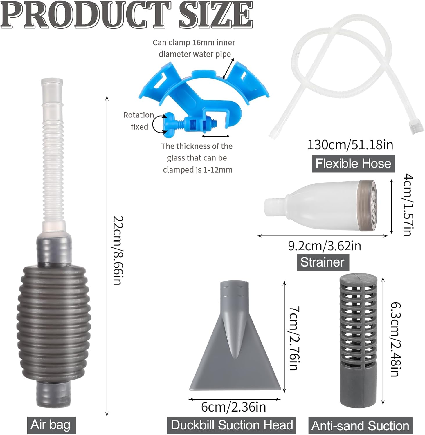 – Keep Fish Safe: The fish tank cleaner has a filter at the suction nozzle, which can effectively prevent small fish or other small animals in the bathtub from being sucked out, greatly ensuring their safety.