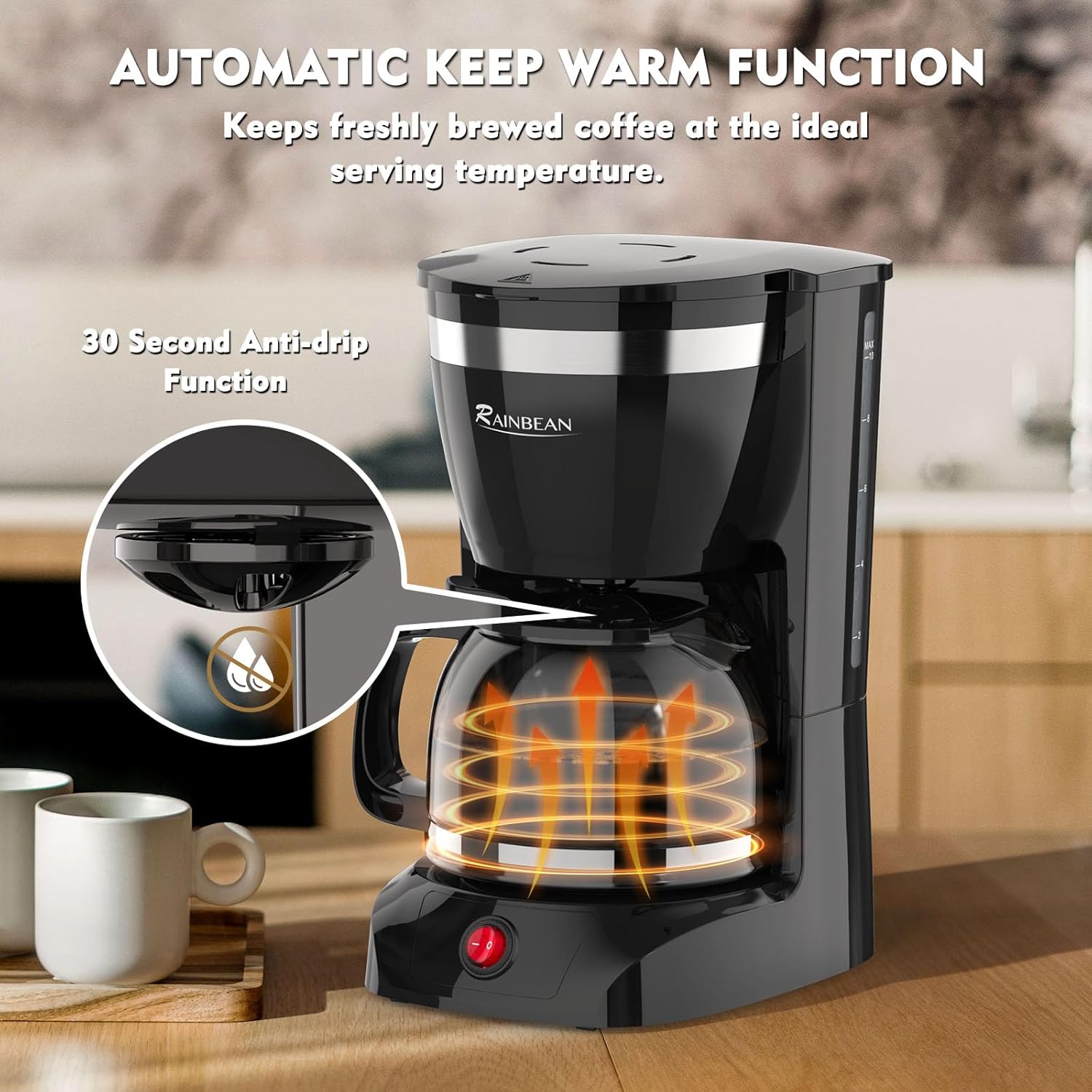 【Keep Warm & Anti-drip Function】If you just want to grab a quick cup of mid brew, the 30 seconds anti-drip function will enable you to pause in between and brew the coffee. This coffee machines is equipped with a non-stick warming plate that runs after the coffee is brewed to keep the coffee warm.This filter coffee machines with hot plate goes to keep coffee flavorful