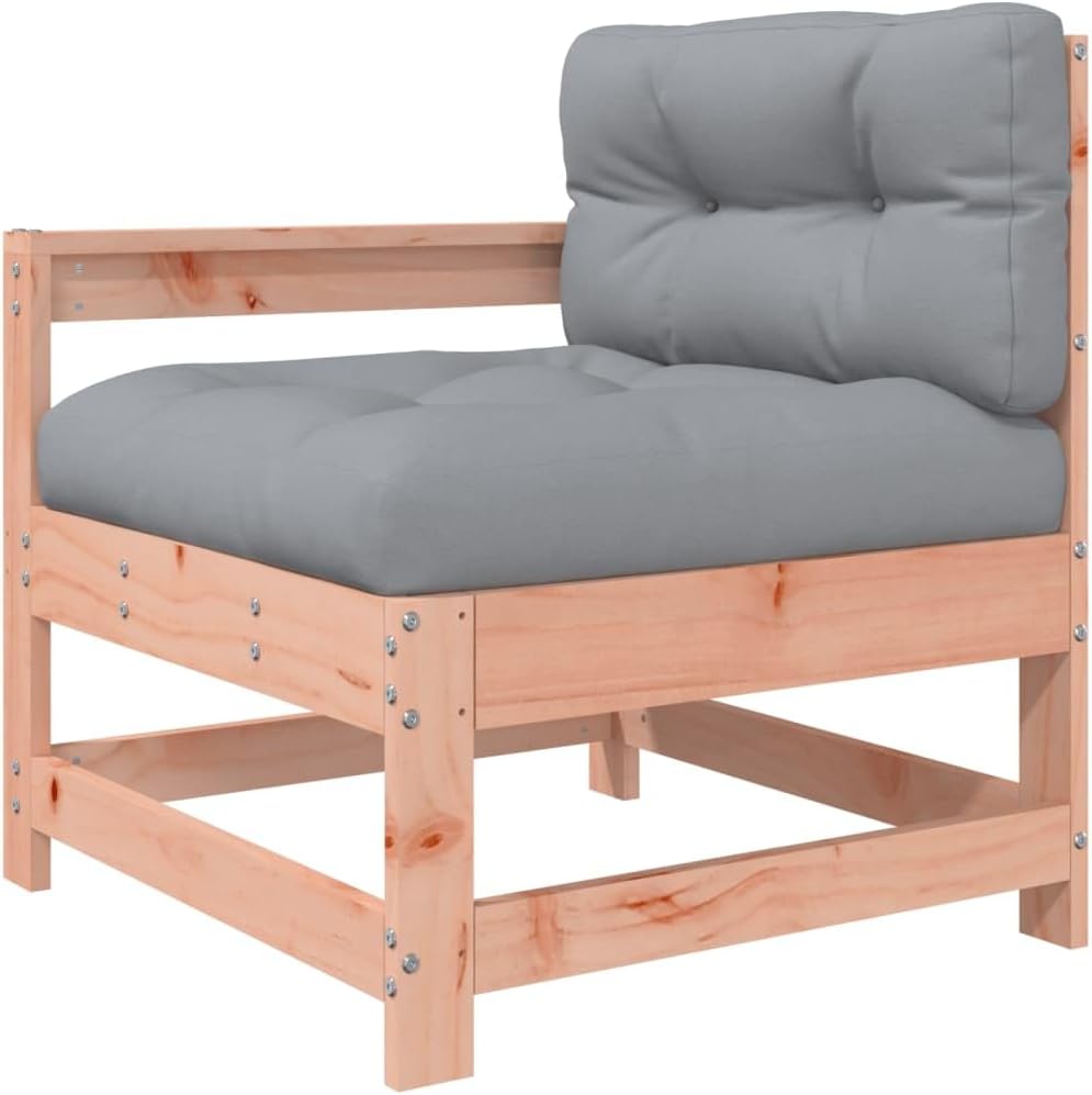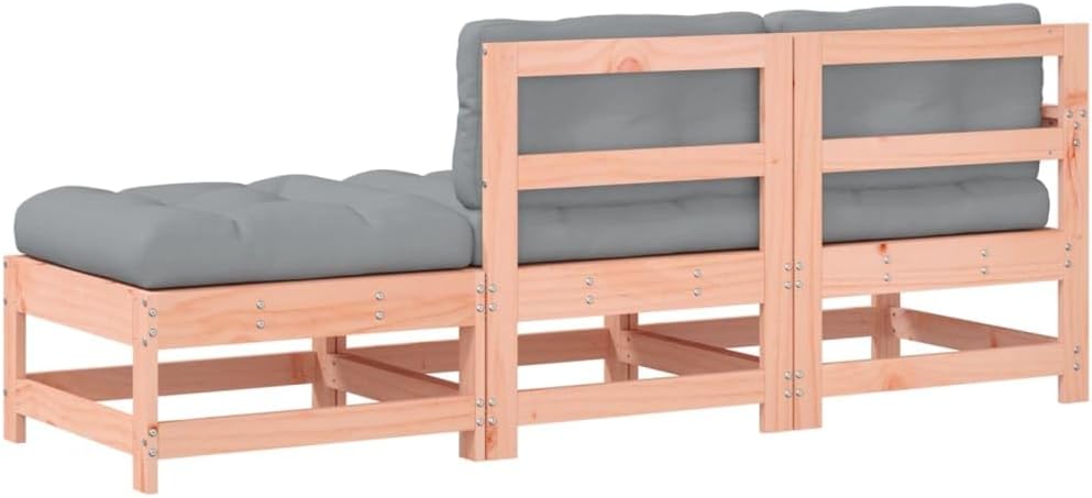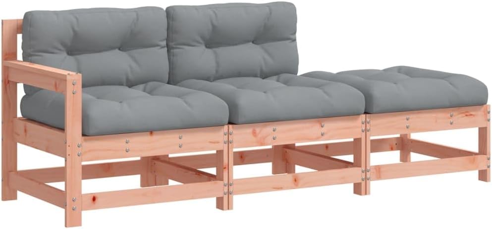This wooden garden lounge set, standing out with the slatted design and soft cushions, will make a great addition to your garden, patio, or terrace for enjoying a cosy time with your family or friends. Solid douglas wood: Solid douglas wood is a highly durable wood that works well for outdoors. Douglas wood is also b enough to work with minimum care, even under the influence of the weather.Sturdy and stable frame: The wooden frames make the lounge set sturdy and stable for daily outdoor use.Comfortable seat experience: The backrest and armrest add extra seating comfort for the garden furniture set. Also, the thickly padded cushion provides comfort for your sitting time.Modular design: The sofa set is flexible and easy to move around. You can combine it with other modular segments in the webshop to create your own personal garden lounge set configurations! Good to know:To make sure your outdoor furniture stays beautiful, we recommend protecting it with a waterproof cover.Material: Solid douglas wood (untreated)Slat material: PlywoodMiddle sofa dimensions: 62 x 62 x 70.5 cm (L x W x H)Garden chair dimensions: 66 x 62 x 70.5 cm (L x W x H)Garden footstool dimensions: 62 x 62 x 32 cm (L x W x H)Maximum load capacity (per seat): 110 kgCushion:Colour: GreyCover material: Oxford fabricFilling material: polypropylene cottonSeat cushion dimensions: 60 x 60 x 32 cm (L x W x T)Back cushion dimensions: 60 x 32 x 12 cm (L x W x T)Assembly required: YesDelivery contains:1 x Middle sofa1 x Garden chair1 x Garden footstool3 x Seat cushion2 x Back cushionWe cannot ship to: Guernsey, Outer Hebrides, Isle of Man,Jersey,Kirkwall,Shetland islands.