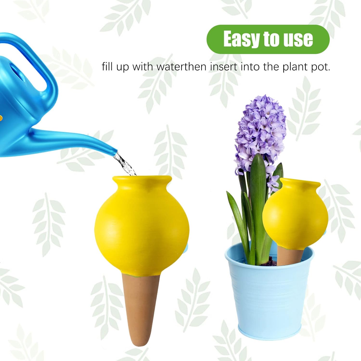 Decorative Self Watering Spikes: This self watering spikes has a cartoon design in appearance. Water will be slowly discharged through the automatic watering pile to automatically water your plants. It can add more luster to the garden while automatically watering plants.