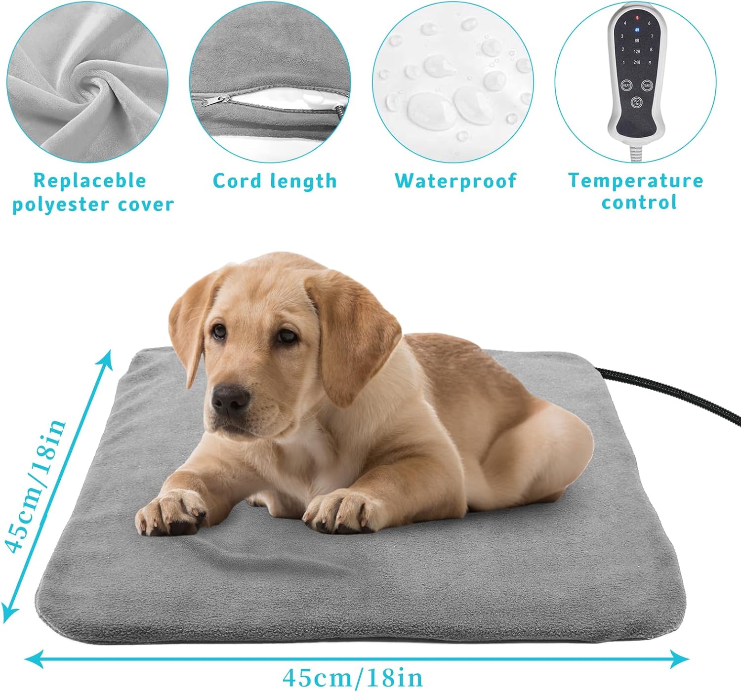 RC SLL Pet Heating pad,Cat Heating Pad Upgraded Adjustable Dog Heated Bed Cat Warming Pad Indoor, Electric Heat Pad for Dogs and Cats with Chew Resistant Steel Cord(Letter,45 * 45cm)