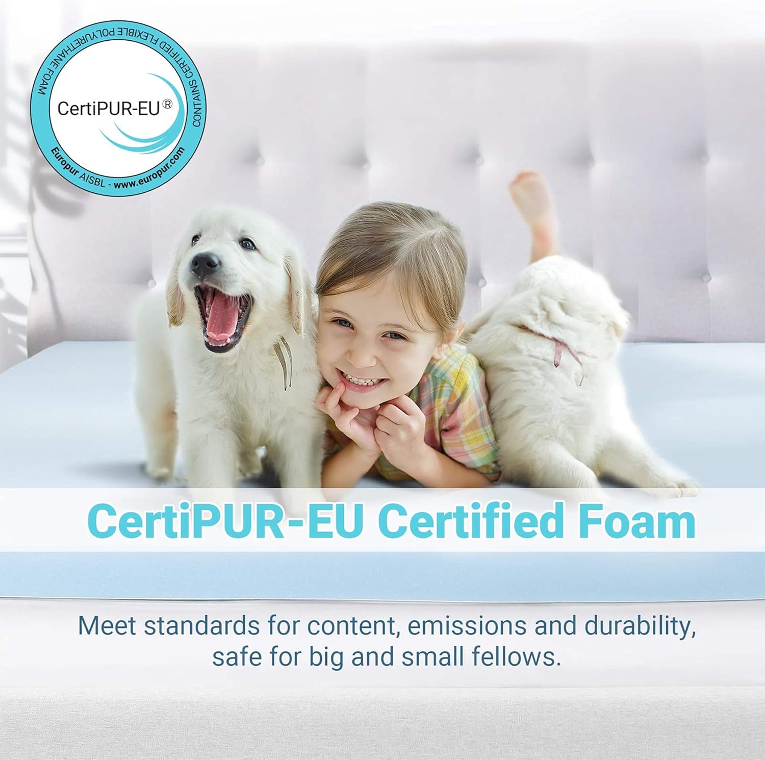 💎【Safe & Odorless】This gel foam mattress topper is certificated by CertiPUR-EU that can ensure the quality and safety of you and your family. Without mercury, lead, formaldehyde, or other harmful chemicals in the content, and it also has low VOC emissions for indoor air quality.