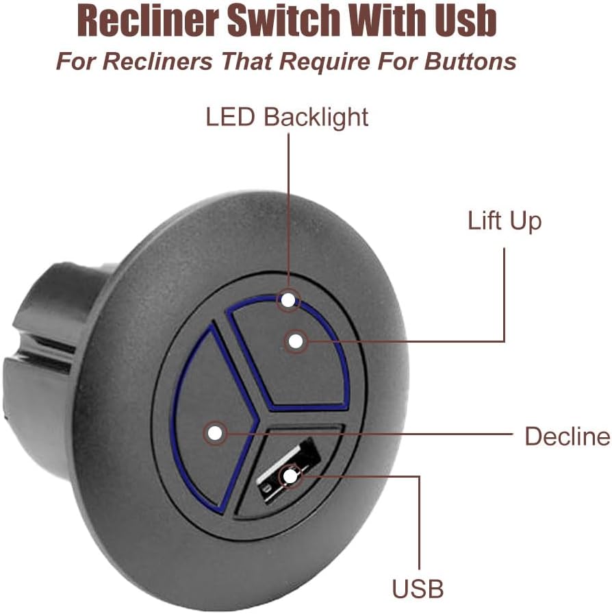 Recliner Chair Electric Controller, Recliner Switch,2 Button Stand Sofa Electric Round Hand Control Handset Replacement, Chair Switch Controller With Usb Fixed Power Recliner Or Lift Chair (01)