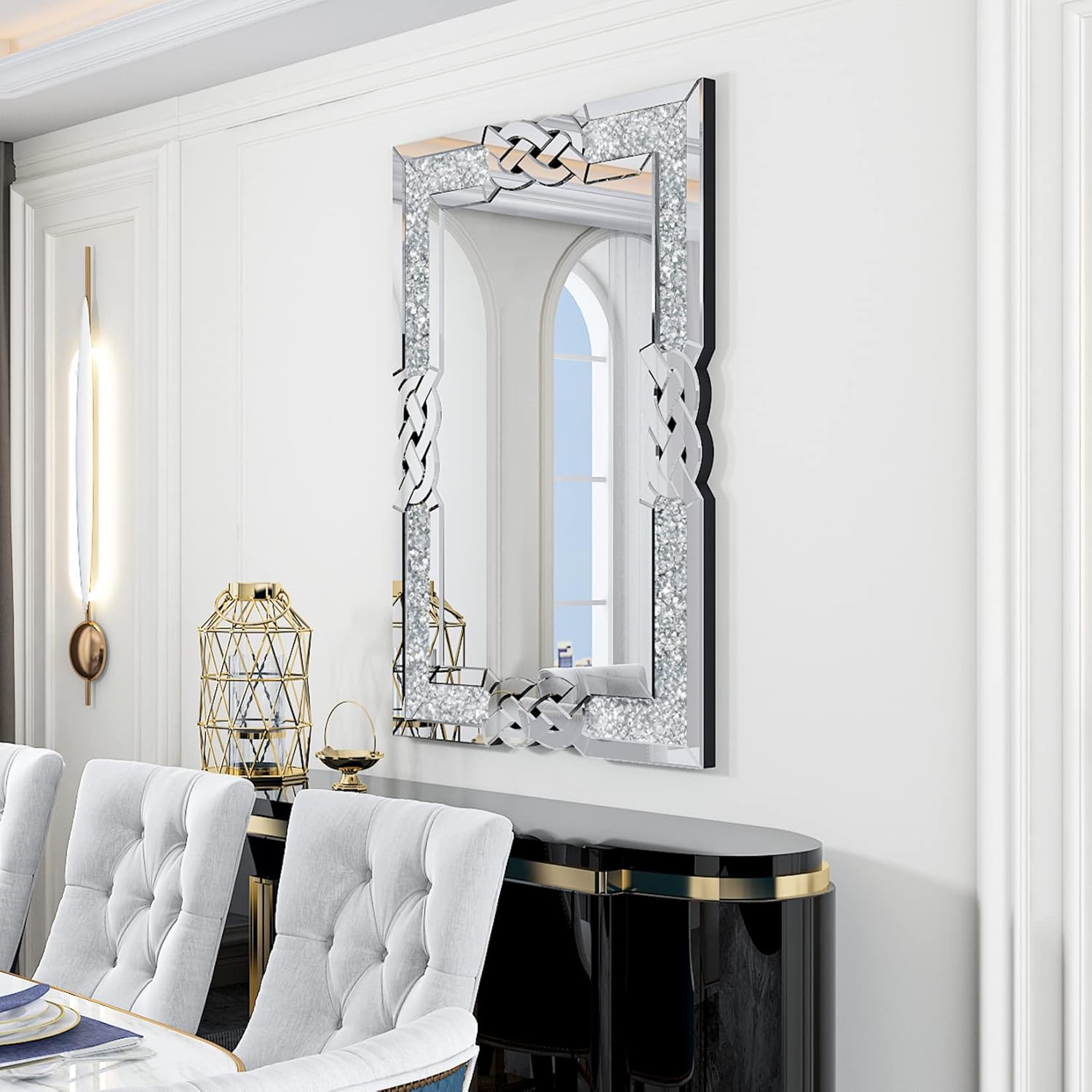 Crush Diamond Mirror – The shinny crystals embedded around the aesthetic wall mirror is the essence of this elegant wall mirror, gives it an eye-catching and distinct look,Bling Sparkle little crystals add a touch of glam style to this gorgeous wall mirror,We highly recommended this mirror for someone who is very fond of interior beauty,Wall mirrors with ornate,crystal can pack a punch in even the most minimally designed rooms