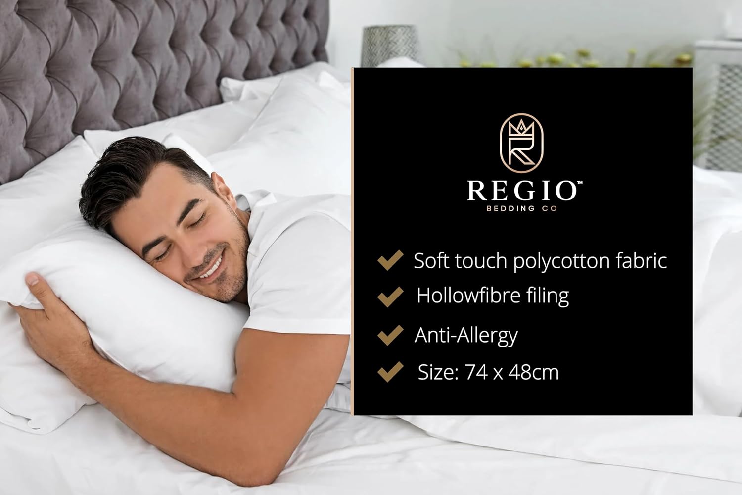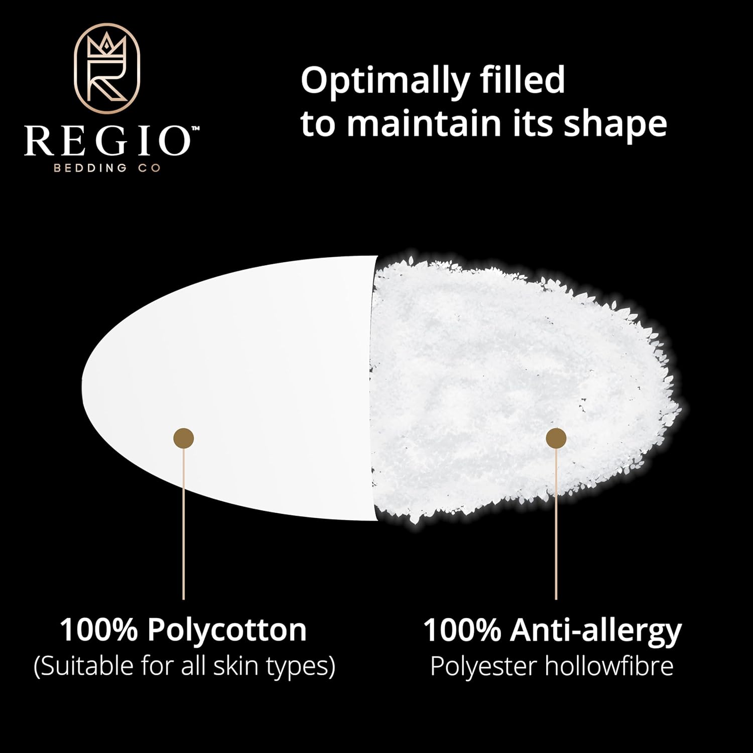 MEDIUM SUPPORT PILLOWS WITH LUXURIOUS POLYESTER HOLLOWFIBRE FILLING – Regio Bedding Co pillows are packed with premium hollowfibre to maintain its shape and provide extra stability for a perfect night’s sleep. Just remember to fluff each pillow daily before use!