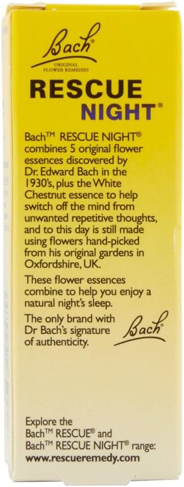 NATURAL BACH FLOWER ESSENCE FORMULA: Rescue Night is Dr Bach’s famous combination of five natural flower essences plus the additional essence of White Chestnut