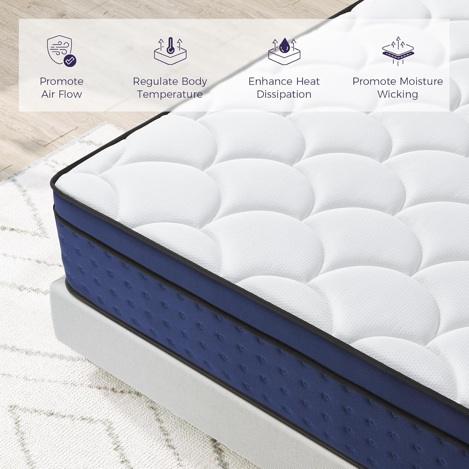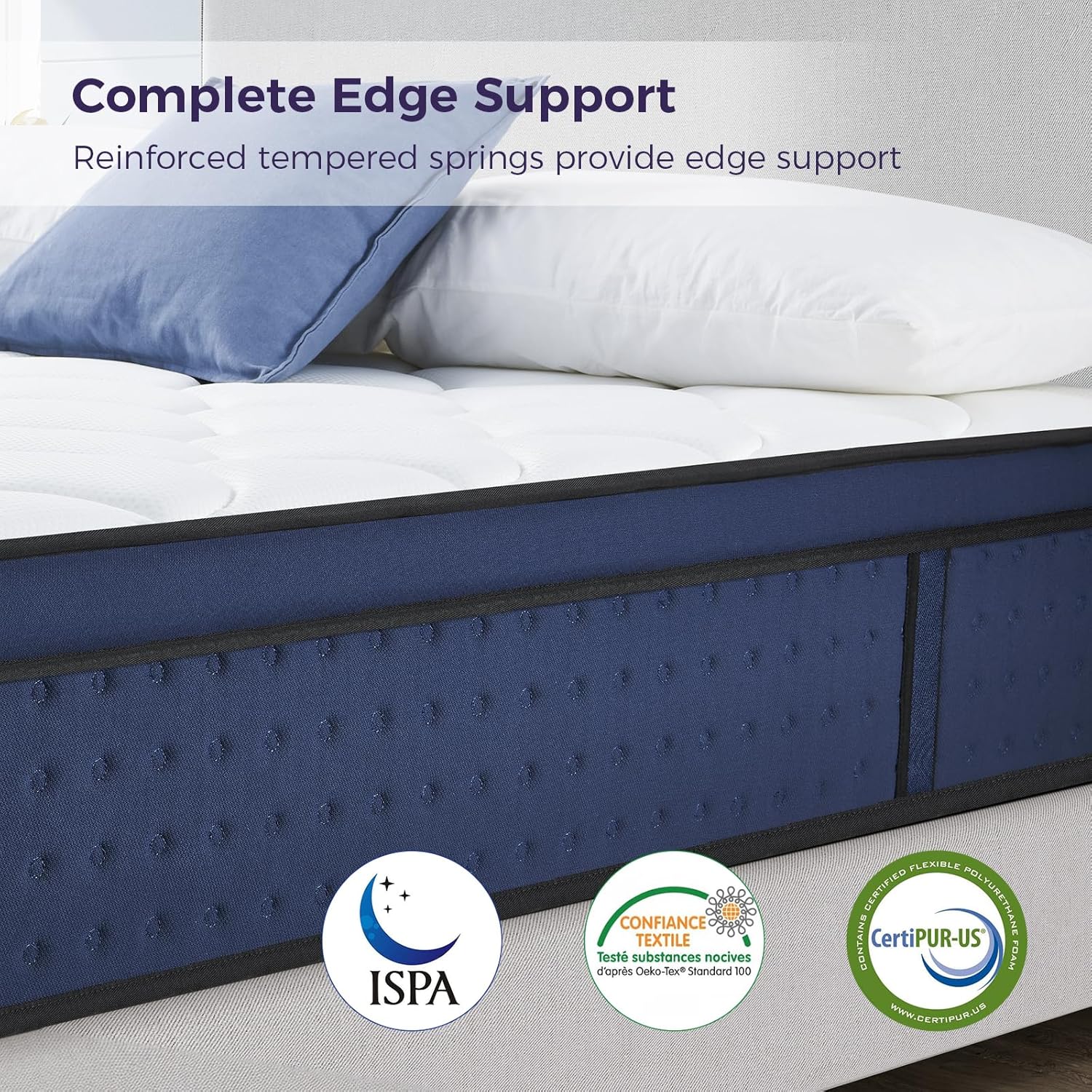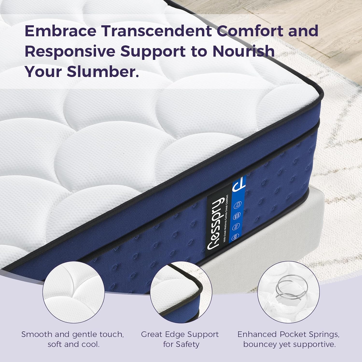 Resspry Double Mattress, 12Inch Hybrid Mattress for Pressure Relief, Breathable Foam with Individually Pocket Spring, Medium Firm Mattress Double Bed, Navyx Collection,Double(135×190×30cm)