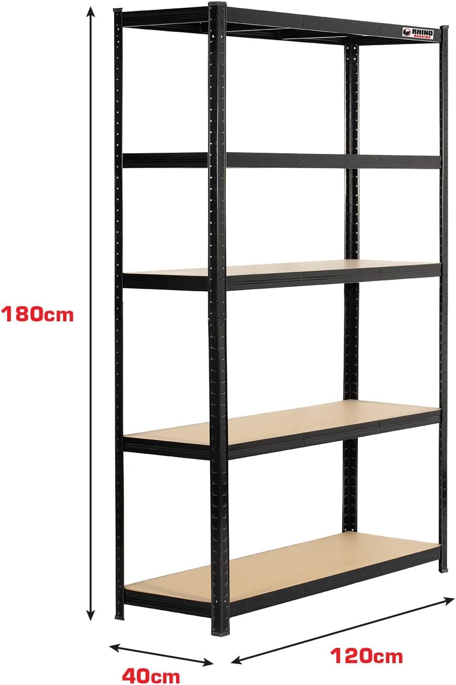 Rhino Racking – 5 Tier Heavy-Duty Industrial Storage Shelves – Black – 180x120x40cm