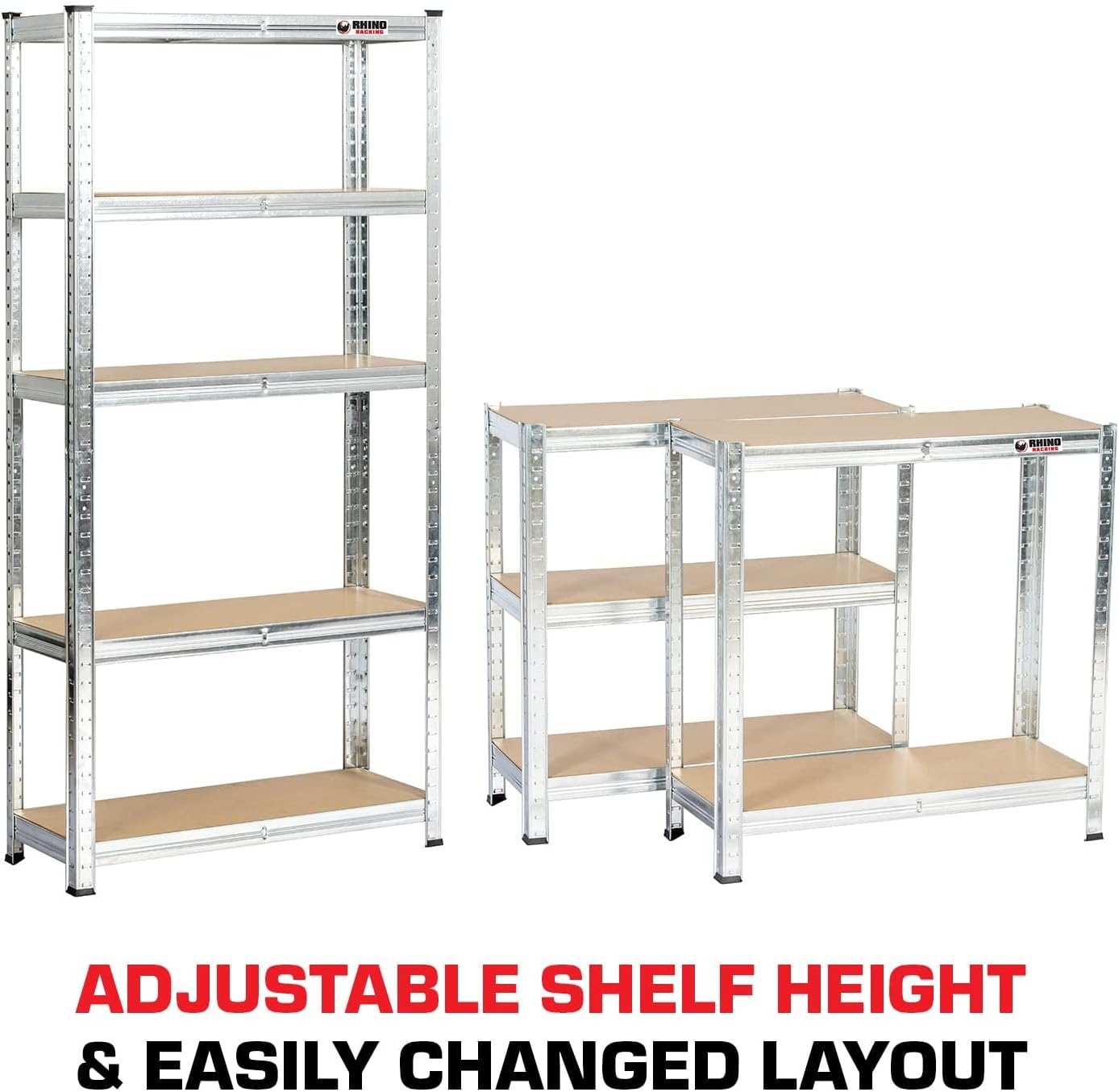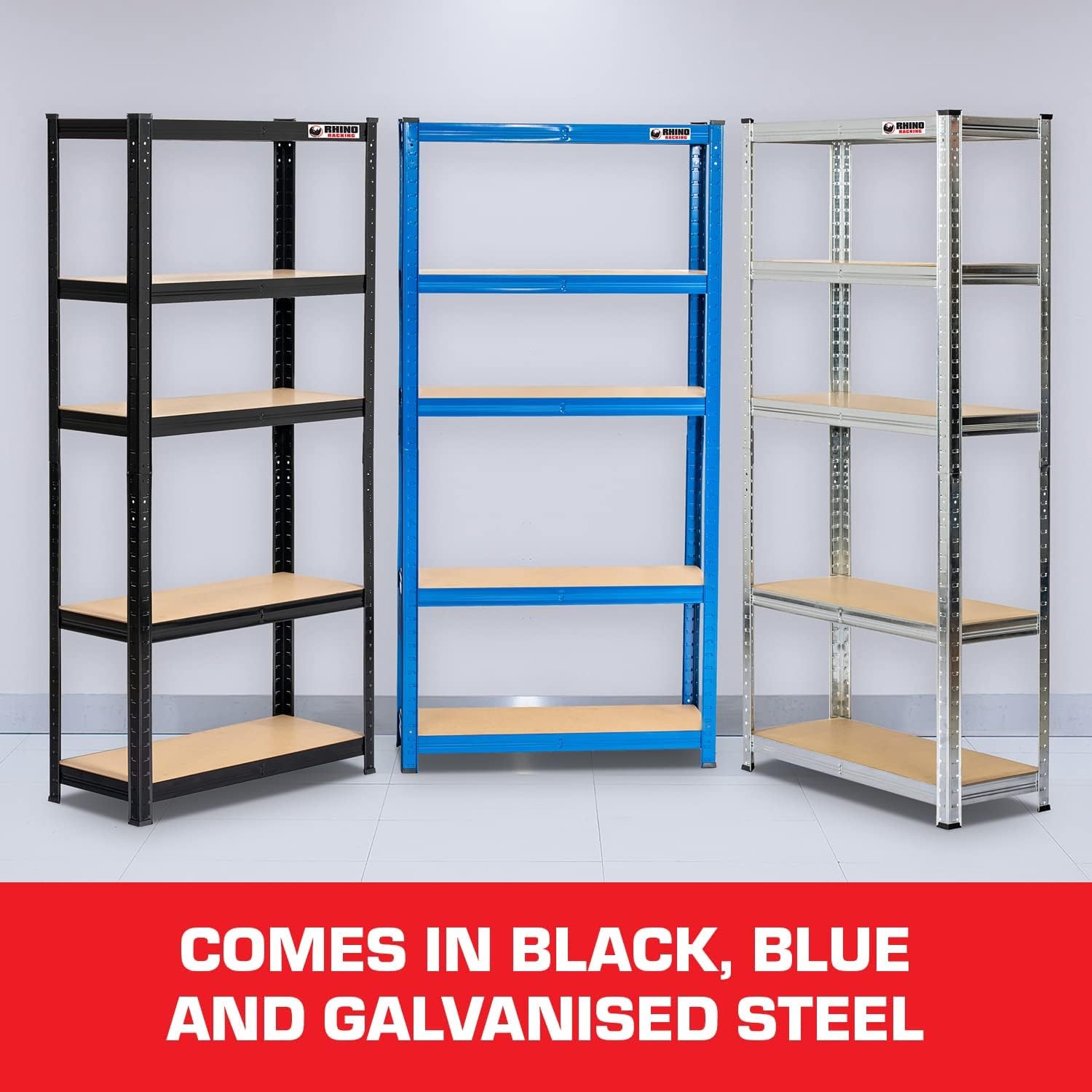 Rhino Racking Heavy-Duty Garage Shelving unit – 5-Tier Steel Storage Shelves, Boltless Shelves, Industrial Shelving, Galvanised, 200kg Per-Tier, 150x75x30cm