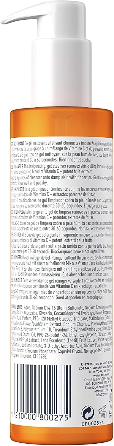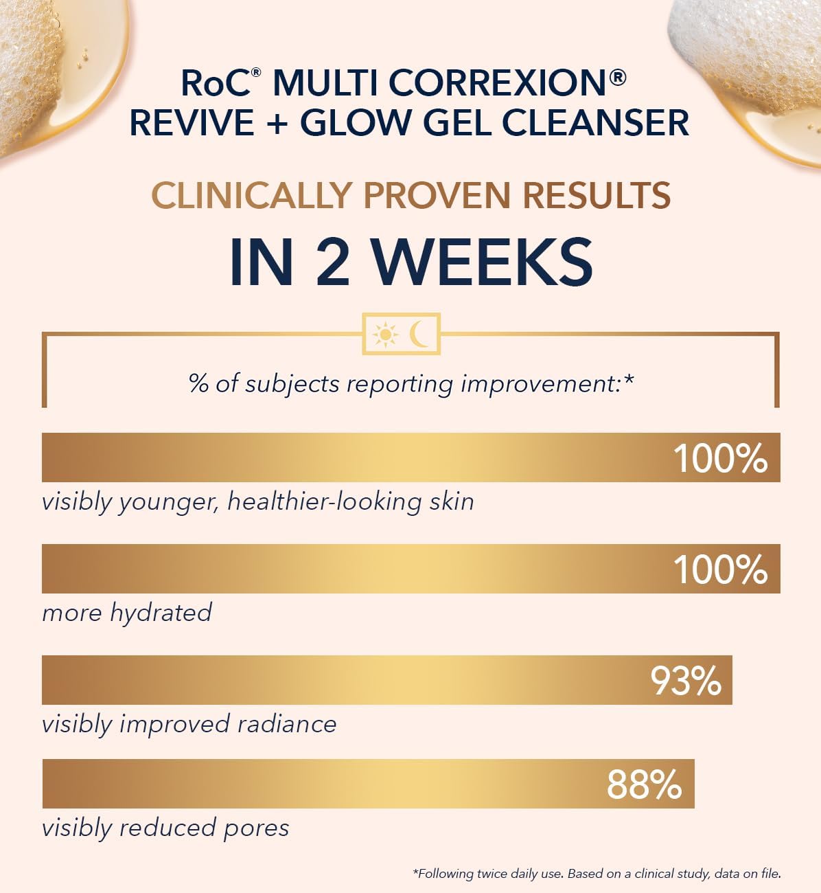 RoC Multi Correxion Revive + Glow Gel Cleanser, Brightening Face Wash, Vitamin C & Glycolic Acid, Healthy Skin Glow, Gentle Cleansing Gel – 177 ml