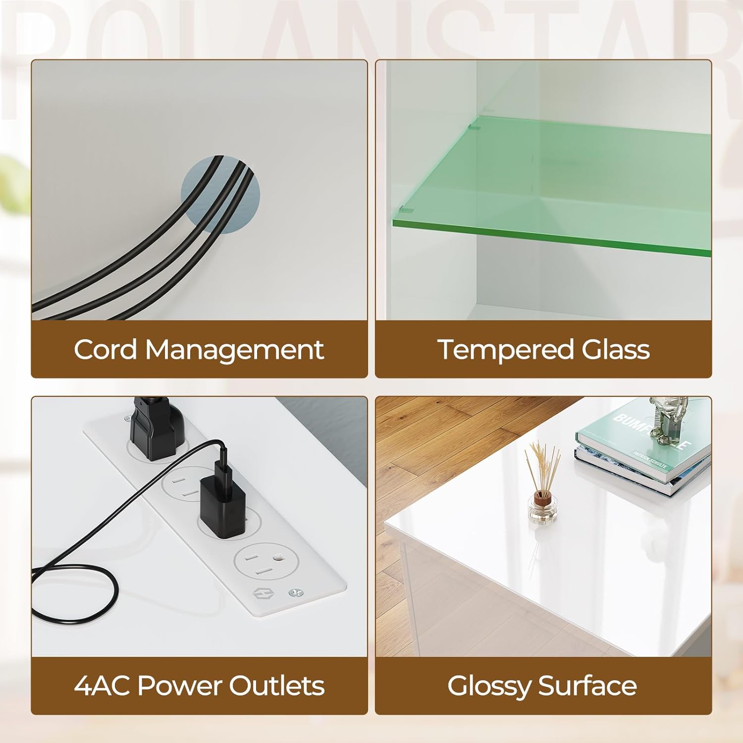 Power Outlet: The built-in power strip with 4 AC outlets provides convenience for charging your TV, gaming gear and other electrical devices