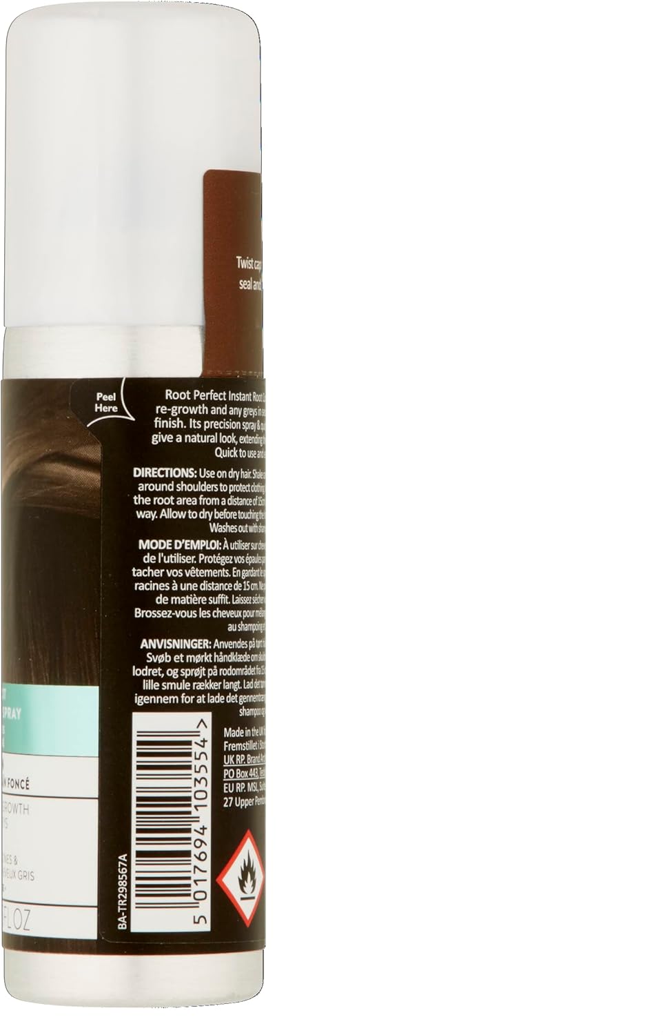 ROOT PERFECT INSTANT CONCEALER: In need of a quick touch-up? Spritz the Root Perfect Instant Root Concealer Spray across your hair for a quick and easy fix. Our colour-reviving formula effectively hides greys, roots, and regrowth for an all-day flawless finish.