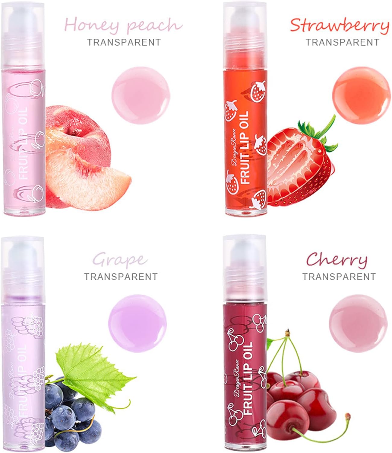 DESCRIBE : 1.This type of shiny lip gloss is long lasting and unique. 2.Very cute and fresh fruit scent roll-on lip oil, different colors correspond to different fruit flavors! 3.The texture is transparent. It is rich in vitamin C and fruit essence, which effectively moisturizes the lips! 4. Activate cell vitality, prevent lip peeling, reduce lip wrinkles, repair lips, promote lip twitching, plump, soft and smooth lips. 5.Lip gloss increases the volume, outlines the contours of the lips, and makes the lips visually more fluffy, soft, thick and smooth. 6.Rolling Ball Design,Unique rolling ball design, more convenient to use, small size and light weight, easy to carry, can moisturize your lips anytime, anywhere. 7.Long Lasting Moisture,Just one smooth, easy glide application will leave your lips feeling soft and smooth all day. SPECIFICATIONS : Applicable people: General Efficacy:Moisturizing lips, rich in vitamin C, fruit essence, fresh and pleasant smell Colour: As shown Net content: 8ml4pcs FEATURES : 1.Refreshing fruity smell. 2.The texture is soft and delicate, fresh but not greasy. 3.Let your lips plump and stay hydrated at all times. 4.It is small in size and easy to carry. How to use:After removing lipstick or lip gloss, apply lip essence and use 2-3 times a day.