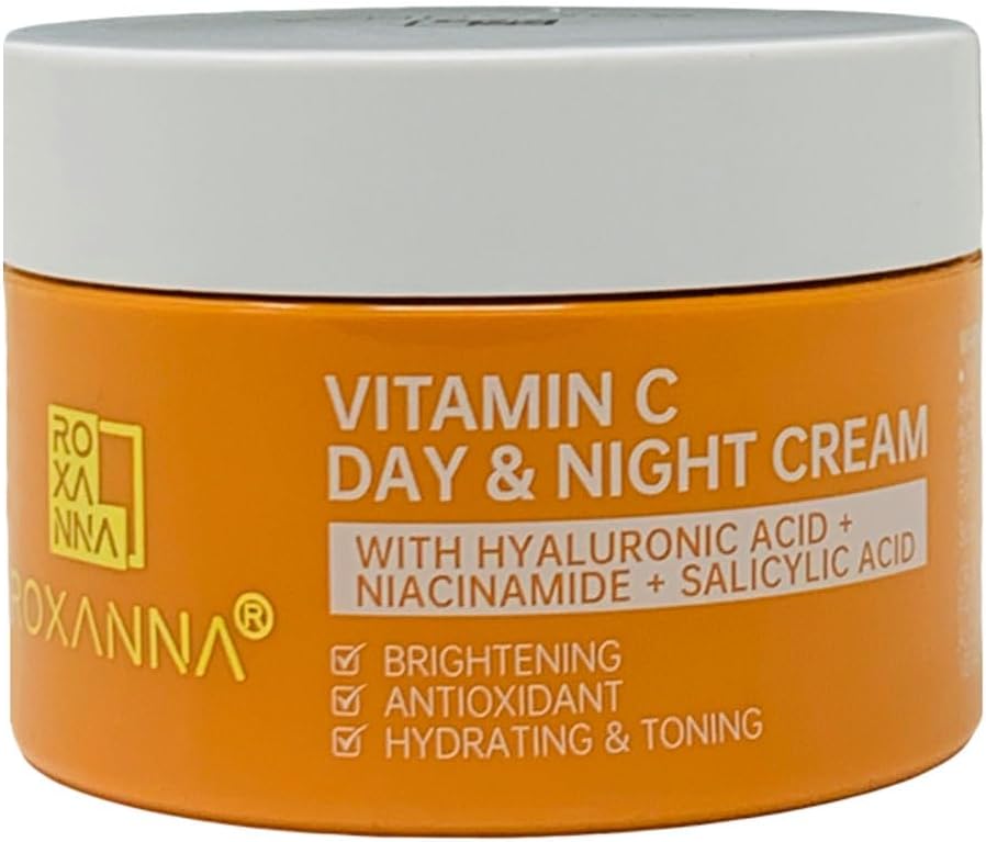 Roxanna Vitamin C Face Cream 50ml with Hyaluronic Acid, Niacinamide & Salicylic Acid Natural Vitamin E & Jojoba Anti Aging & Wrinkle Day & Night Moisturiser, Brighten Hydrate and Plump Skin
