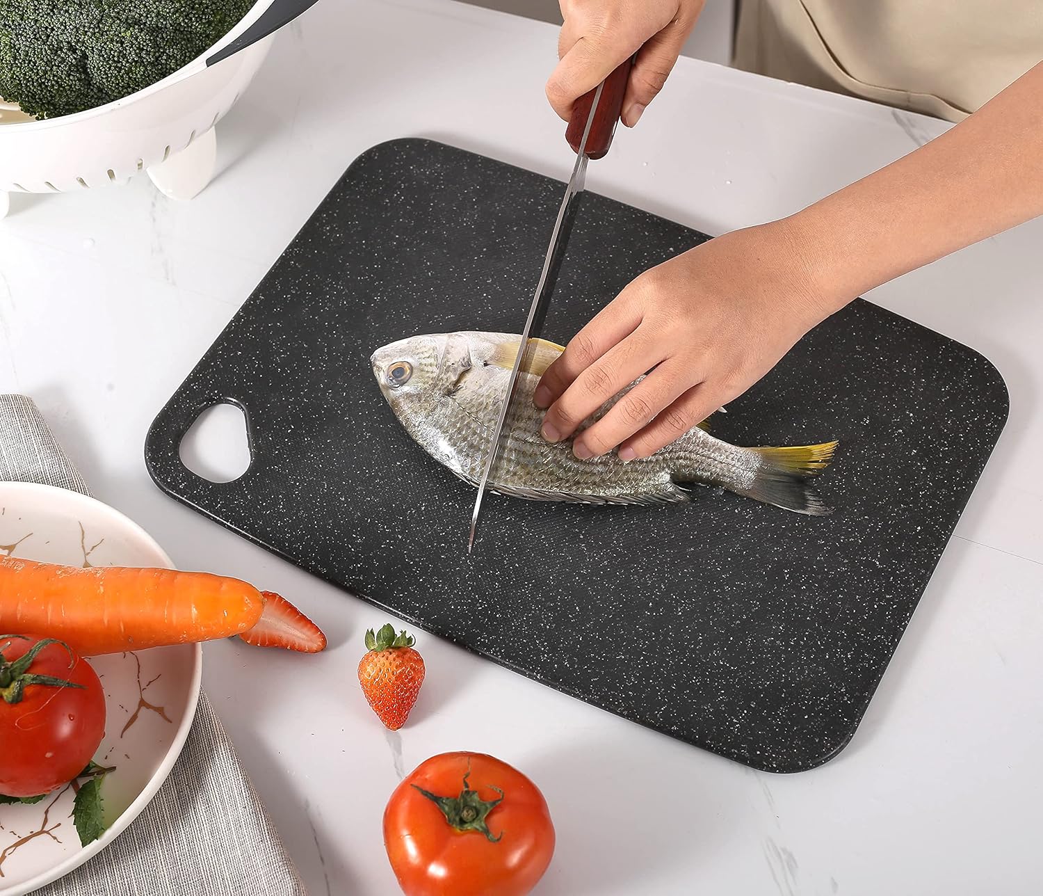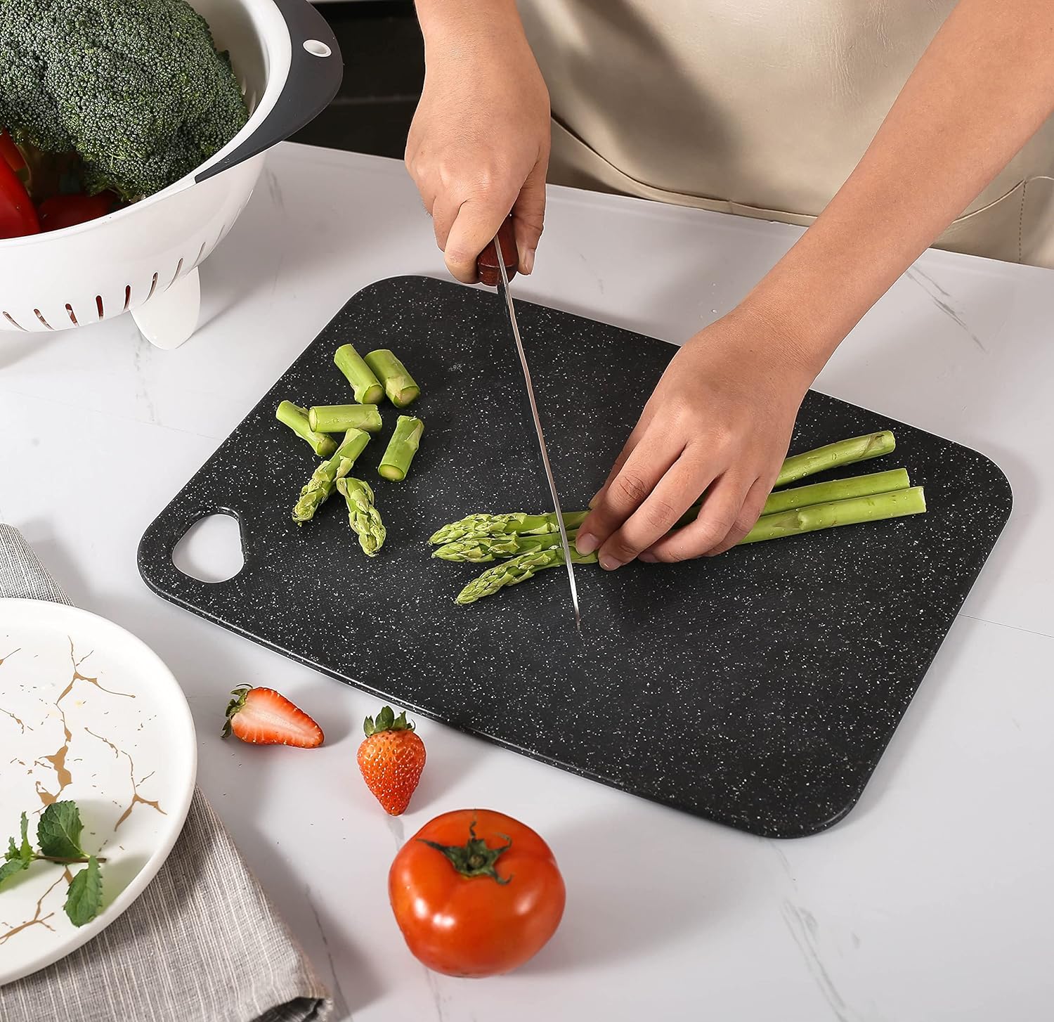 DISHWASHER SAFE & EASY TO CLEAN- The cutting boards is safe to be washed in Dishwasher. It is easy to clean and stain resistant. Once used, you can put them into the dishwasher so you never have to clean again.