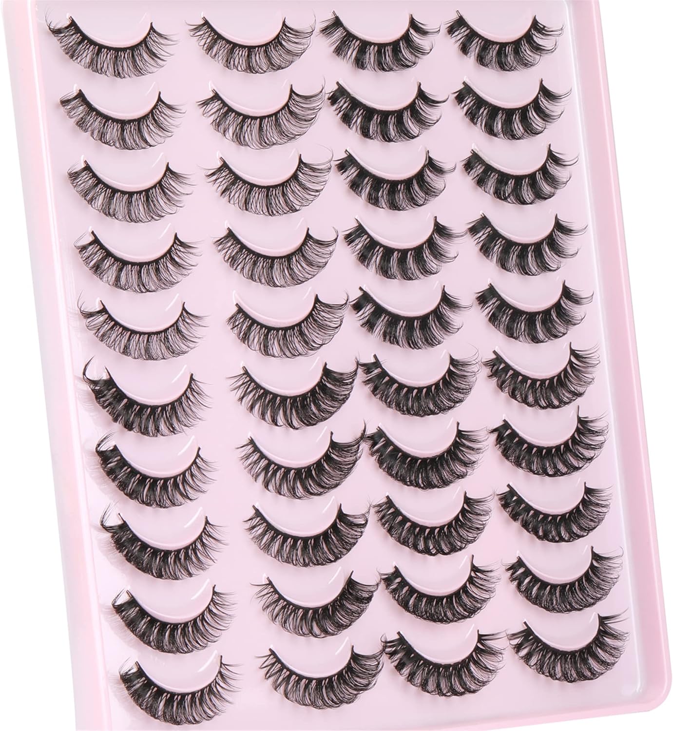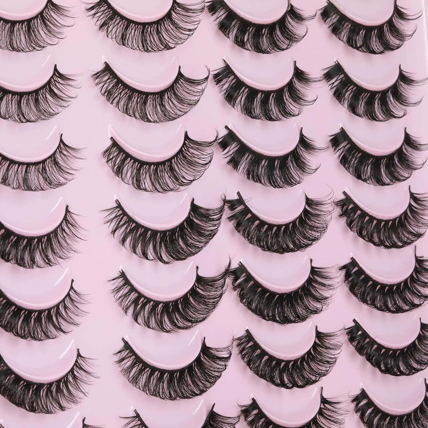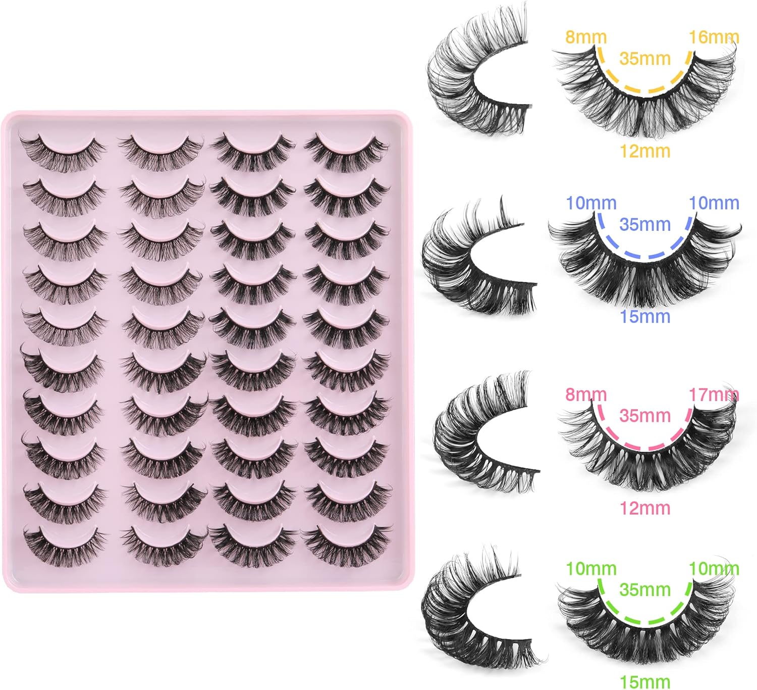 Ruairie False Eyelashes Natural Look Russian Strip Lashes D Curl Fluffy Wispy Faux Mink Lashes 20 Pairs 4 Styles Volume Curly Fake Eyelashes Pack