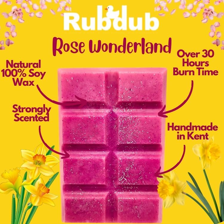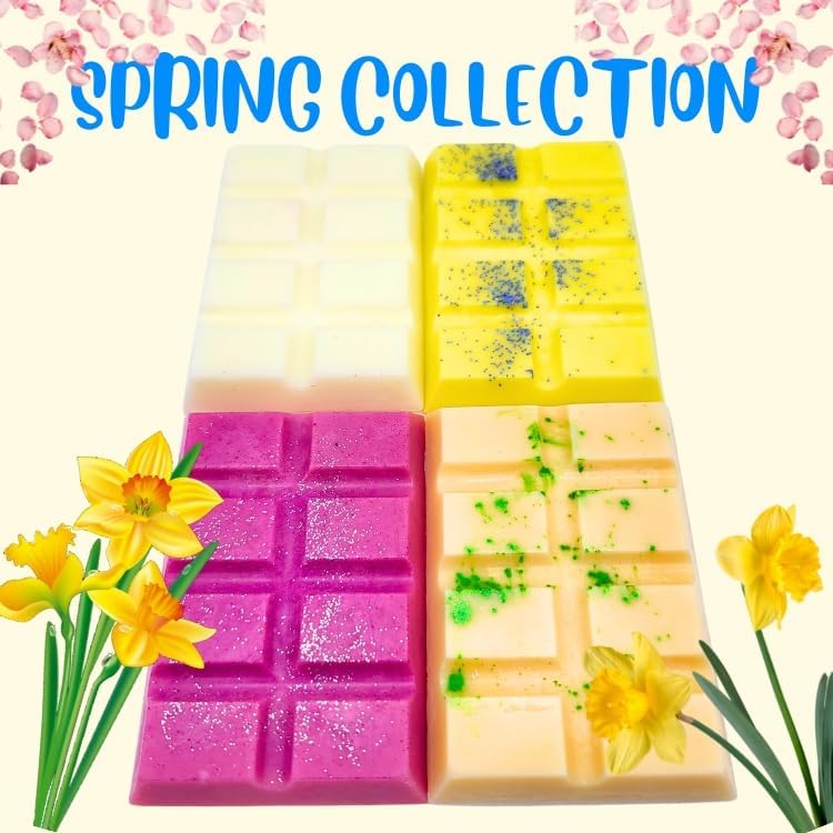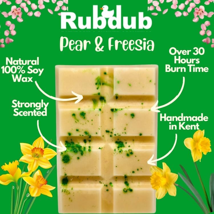 Rubdub 4 X 30G Soy Wax Melt Snap Bars (April Showers/Pear & Freesia/Rose Wonderland/Dove) – 100 Hours + Burn Time – Highly Scented – Wax melts gift set, Wax melts strong scented (Spring Collection)