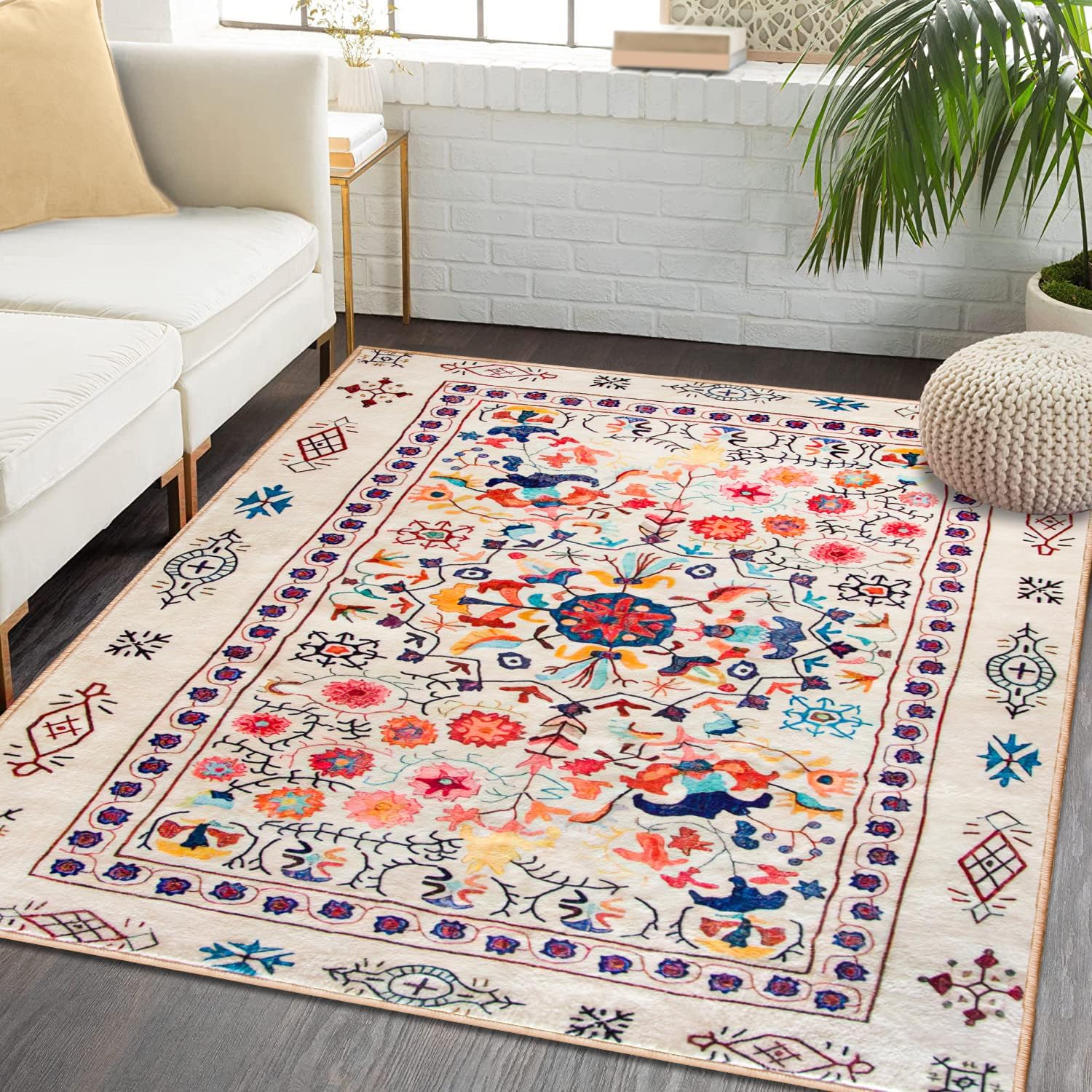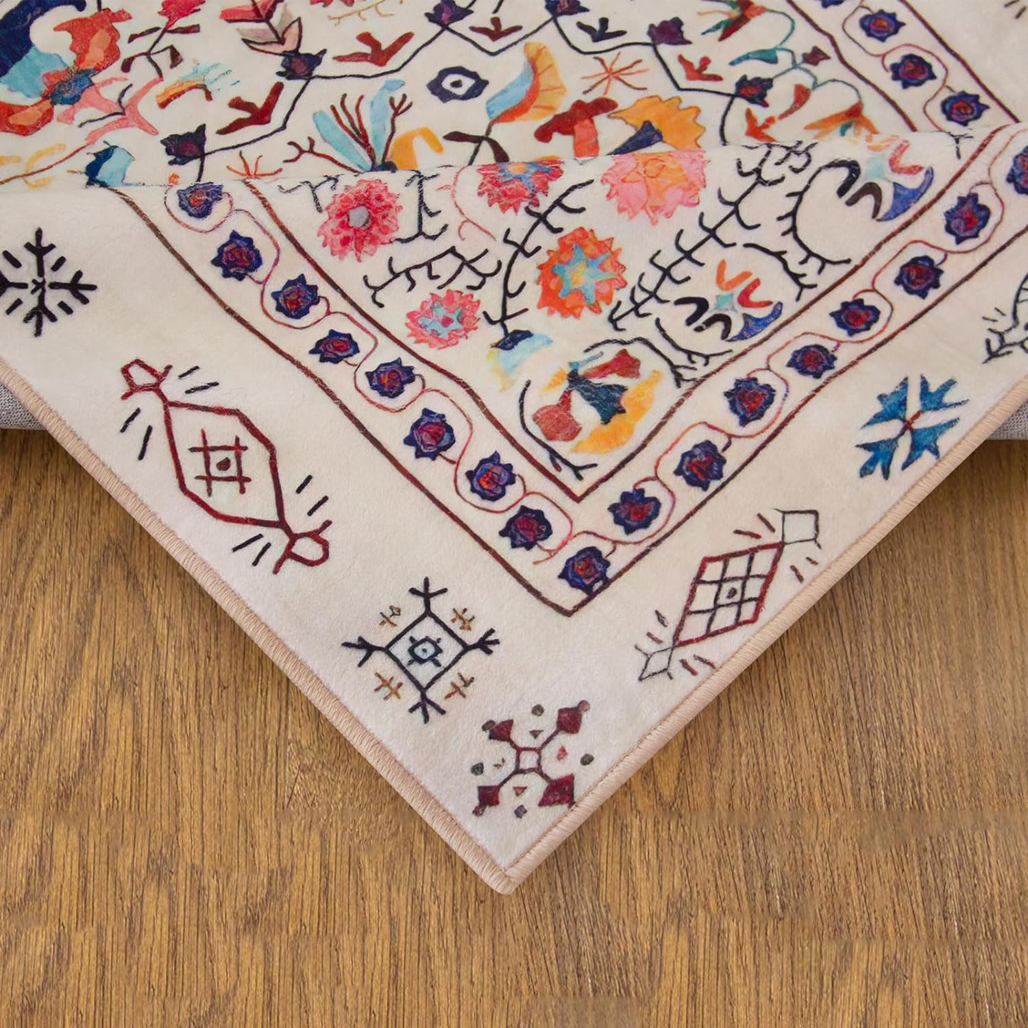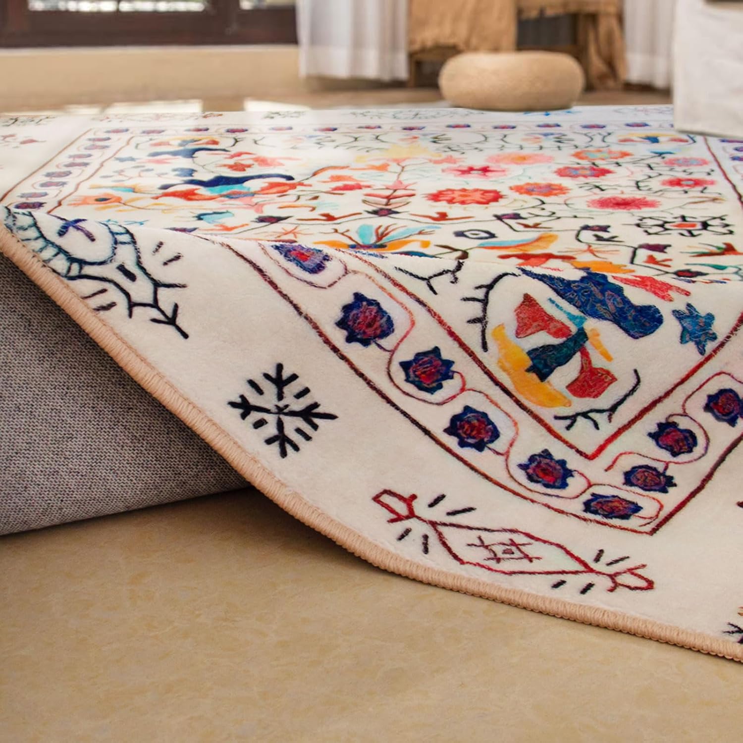 Area rug, short pile, Soft touch, easy care. This faux cashmere rug is approximately 12mm thick. Faux cashmere rug,Modern technical printing process, no colour loss, no shedding. Washable (localised stains can be wiped with a damp cloth, if necessary the carpet can be rinsed with a bathroom rain shower head or a garden hose and dried in an airy place after cleaning), non-slip bottom (different wood and tile floors have different anti-slip effects, use anti-slip stickers if necessary). Product Size Note: The carpet is affected by hand-wrapping and other processes, there is 1-3 cm error, which is normal and does not belong to quality issues. Product Colour Note: Due to different photographic environments and display screen technology, there may be slight colour errors between the photo colours and the carpet colours, this is common and cannot be avoided. Please refer to the actual colour received. Product Note : The rug is packed in a compression pack for shipping purposes and may have temporary creases, which usually disappear in about 2 weeks. You can lay the rug flat and place some heavy books on it to help the temporary creases disappear quickly. Alternatively, iron the back of the rug with a damp cloth soaked in warm water for the temporary creases to disappear quickly. Service: If you are satisfied with your receipt, feedback is appreciated. If you are not satisfied with the carpet you received, please email us and we will give you a satisfactory service.