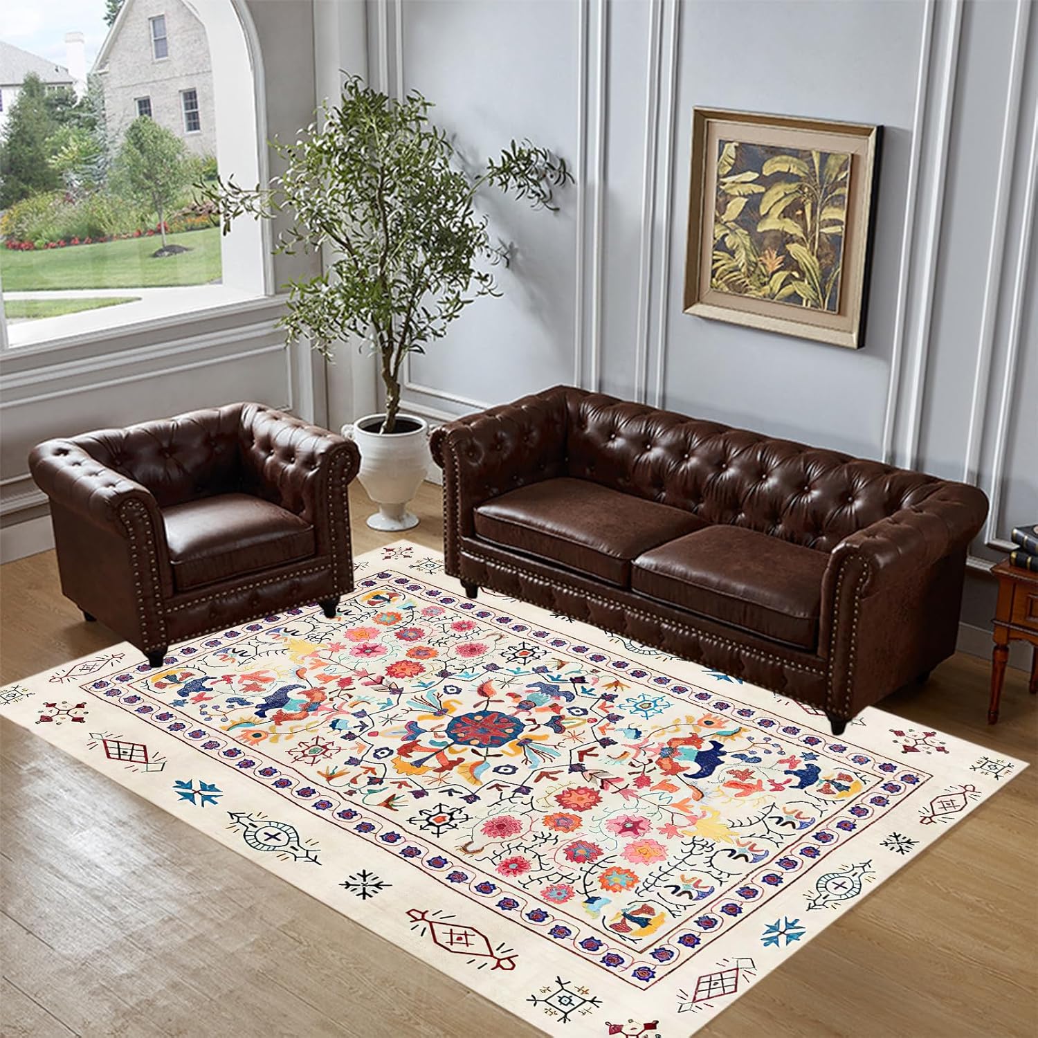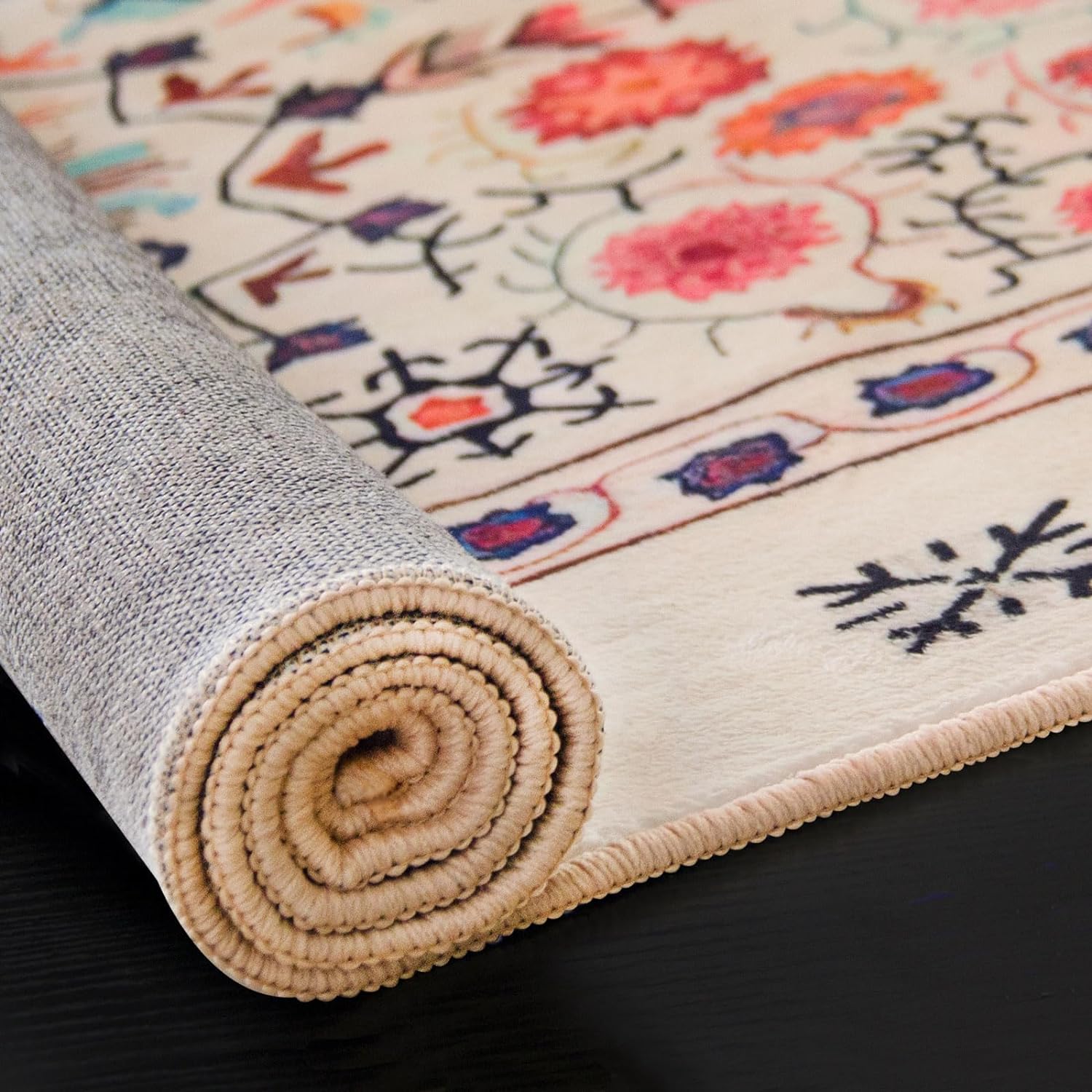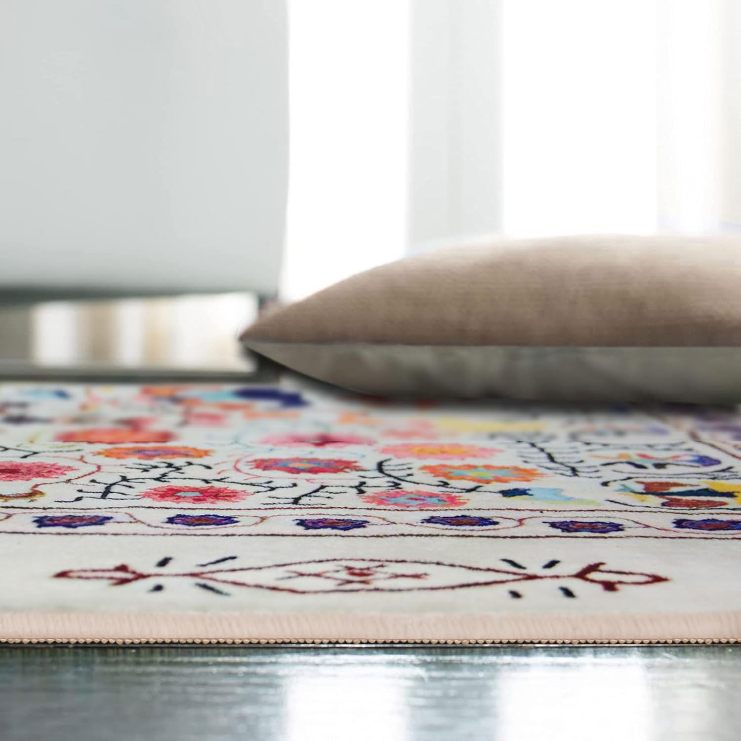 Area rug, short pile, Soft touch, easy care. This faux cashmere rug is approximately 12mm thick. Faux cashmere rug,Modern technical printing process, no colour loss, no shedding. Washable (localised stains can be wiped with a damp cloth, if necessary the carpet can be rinsed with a bathroom rain shower head or a garden hose and dried in an airy place after cleaning), non-slip bottom (different wood and tile floors have different anti-slip effects, use anti-slip stickers if necessary). Product Size Note: The carpet is affected by hand-wrapping and other processes, there is 1-3 cm error, which is normal and does not belong to quality issues. Product Colour Note: Due to different photographic environments and display screen technology, there may be slight colour errors between the photo colours and the carpet colours, this is common and cannot be avoided. Please refer to the actual colour received. Product Note : The rug is packed in a compression pack for shipping purposes and may have temporary creases, which usually disappear in about 2 weeks. You can lay the rug flat and place some heavy books on it to help the temporary creases disappear quickly. Alternatively, iron the back of the rug with a damp cloth soaked in warm water for the temporary creases to disappear quickly. Service: If you are satisfied with your receipt, feedback is appreciated. If you are not satisfied with the carpet you received, please email us and we will give you a satisfactory service.