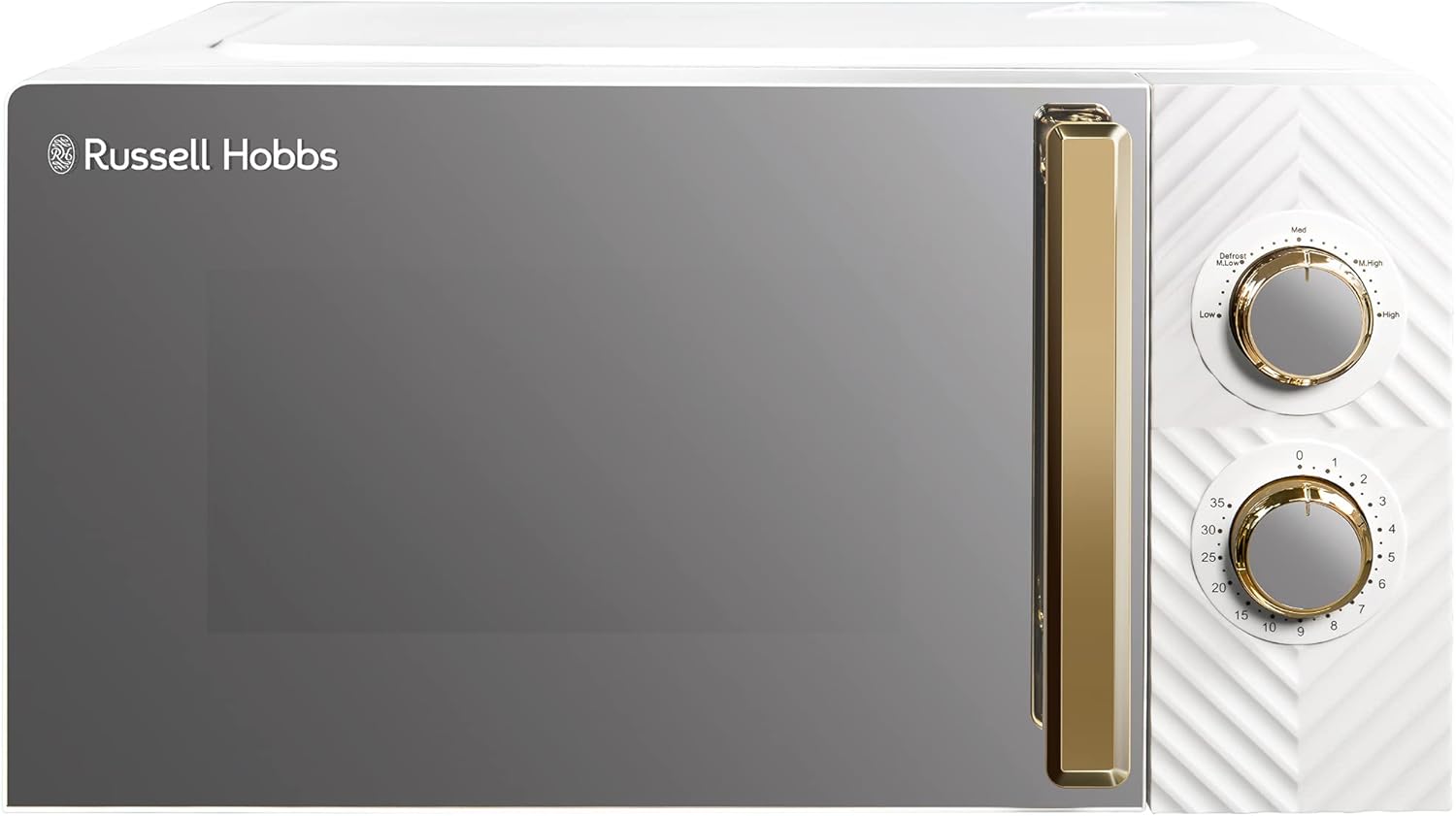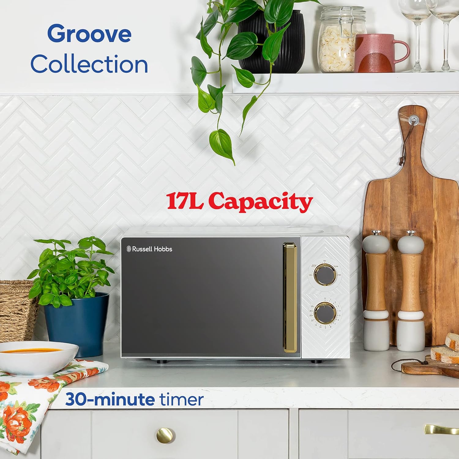 Russell Hobbs 17 Litre 700W White Solo Manual Microwave With Groove Design, 5 Power Levels, Integrated Timer And Defrost Function, Easy Clean RHMM723