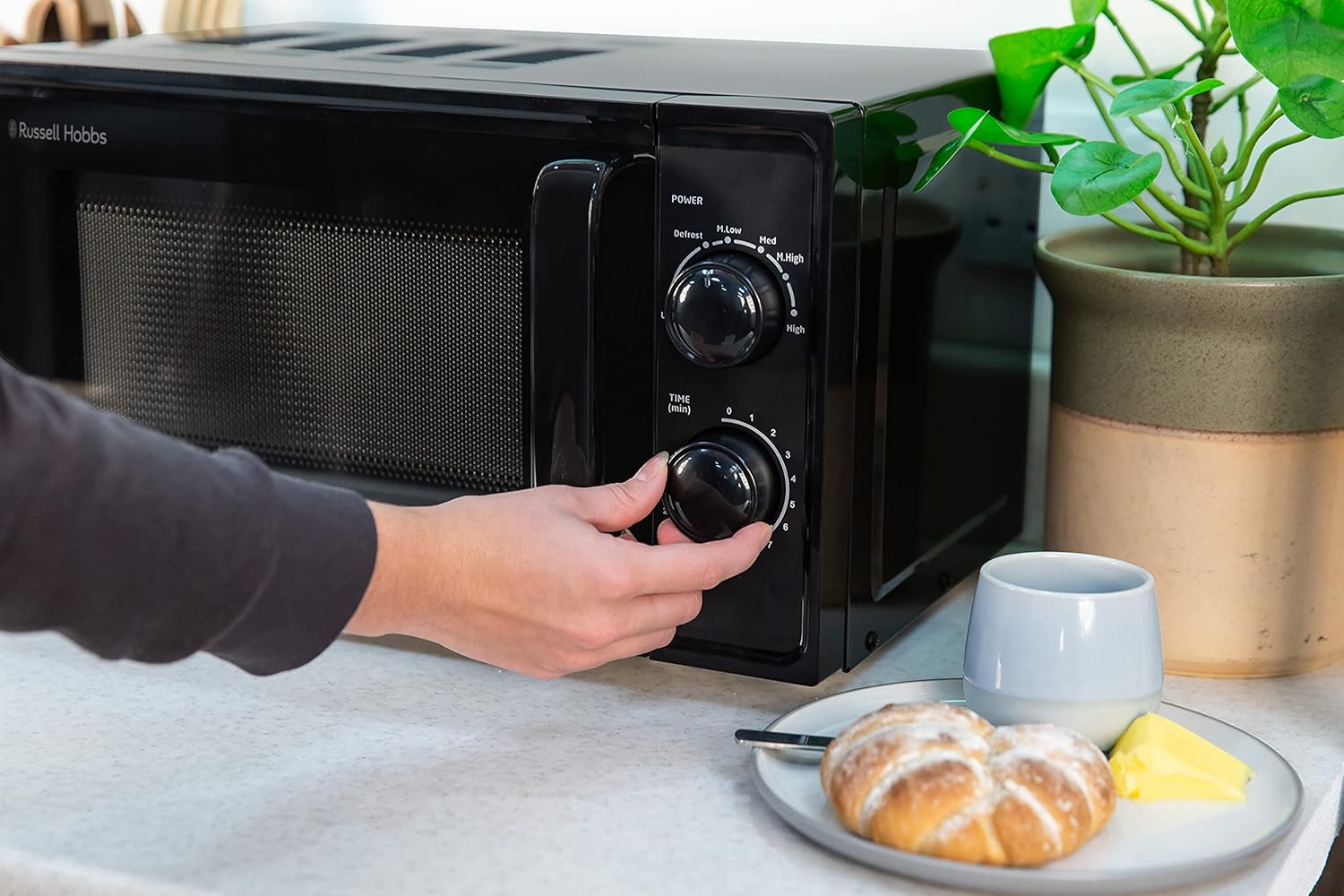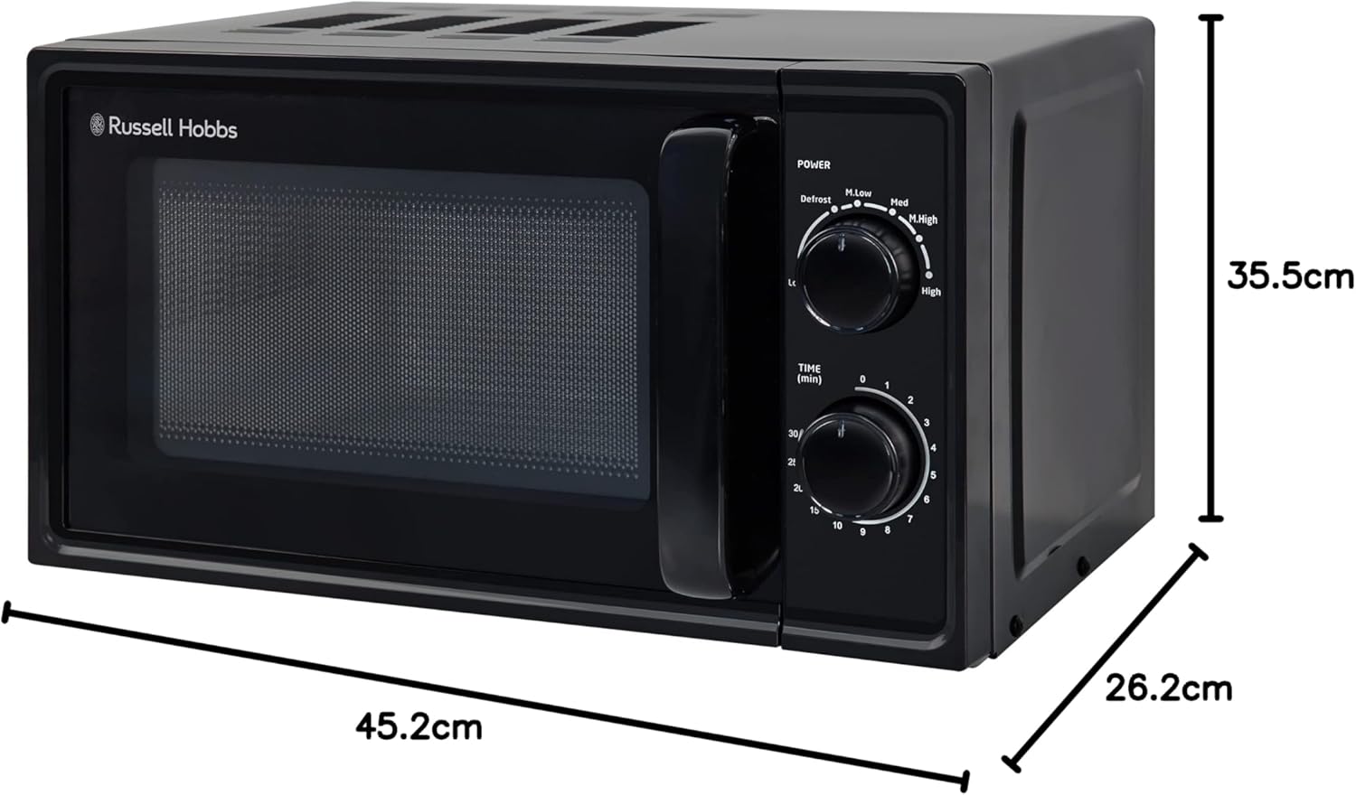 Russell Hobbs 17L Small Microwave Black Manual Textures 700W with 5 Power Levels & 30 min Timer, Defrost Function & Easy Clean, RHM1725B