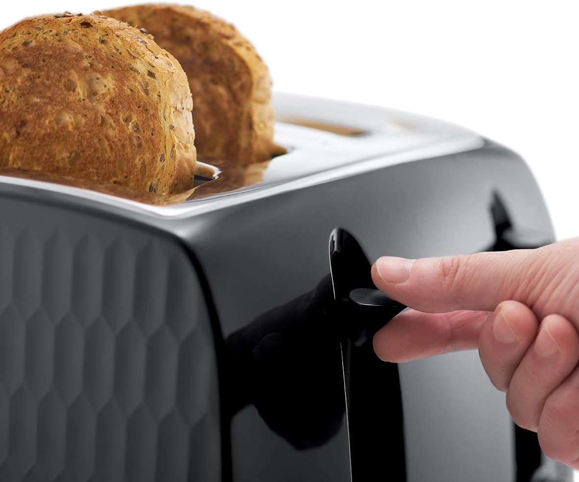 Trends move fast. Now you can keep up. Thanks to Honeycomb 4 Slice Toaster, which is the perfect kitchen accessory. Bringing you a stylish design that doesn’t blow your budget, making over your kitchen can be easy and inexpensive. In a Premium Black Plastic with a Honeycomb-Inspired Textured Design, you can enjoy a tasty slice of toast from a toaster you’re proud of. With a High Lift Feature that lets you lift your toast up to your fingertips.