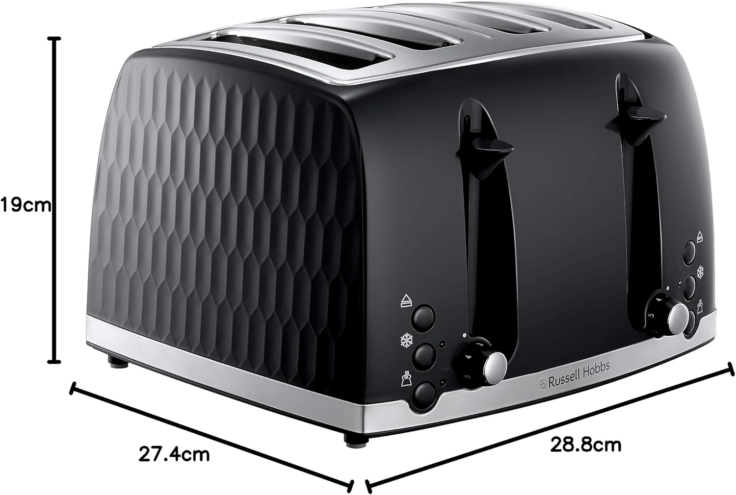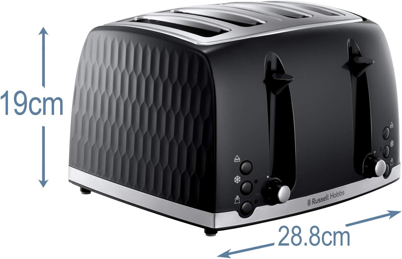 Russell Hobbs 26071 4 Slice Toaster-Contemporary Honeycomb Design,Extra Wide Slots & High Lift,BlackRussell Hobbs 26071 4 Slice Toaster-Contemporary Honeycomb Design,Extra Wide Slots & High Lift,Black