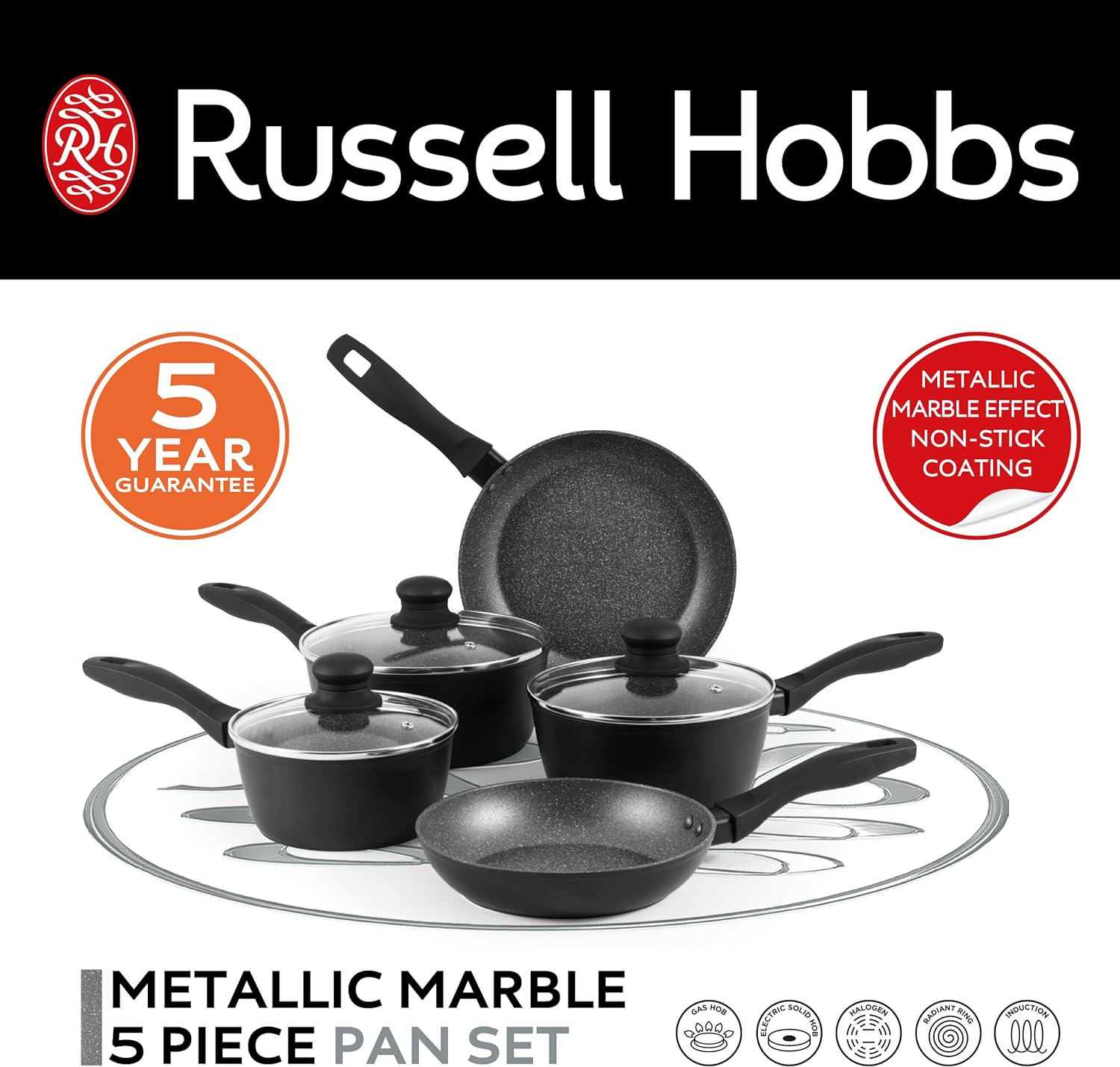 Russell Hobbs RH02814EU7 Metallic Marble Cooking Pan Set – Non-Stick 5