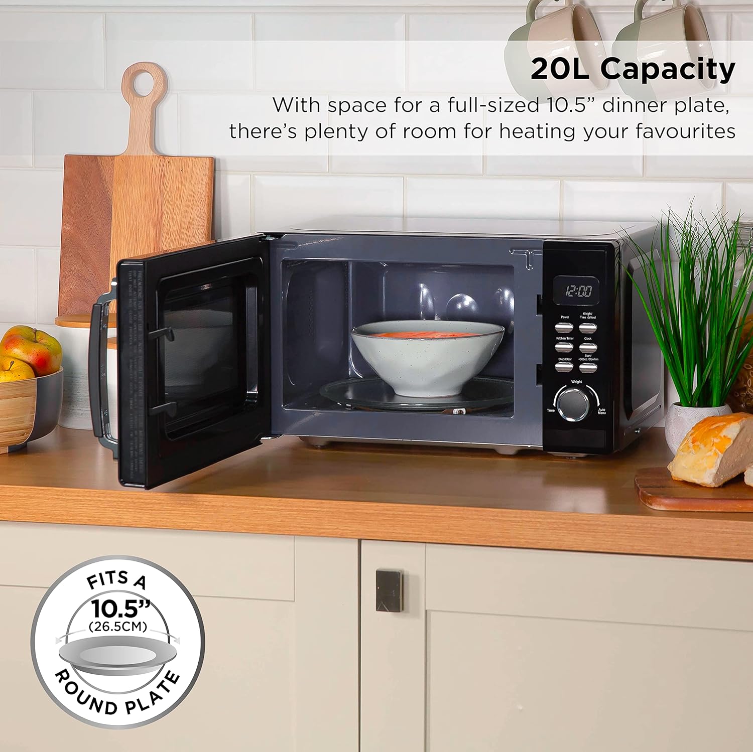 COMPACT DESIGN – (H)25.9 x (W)43.9 x (D)35.5 CMs microwave with 20L capacity. This microwave will fit seamlessly onto any countertop without taking up too much room