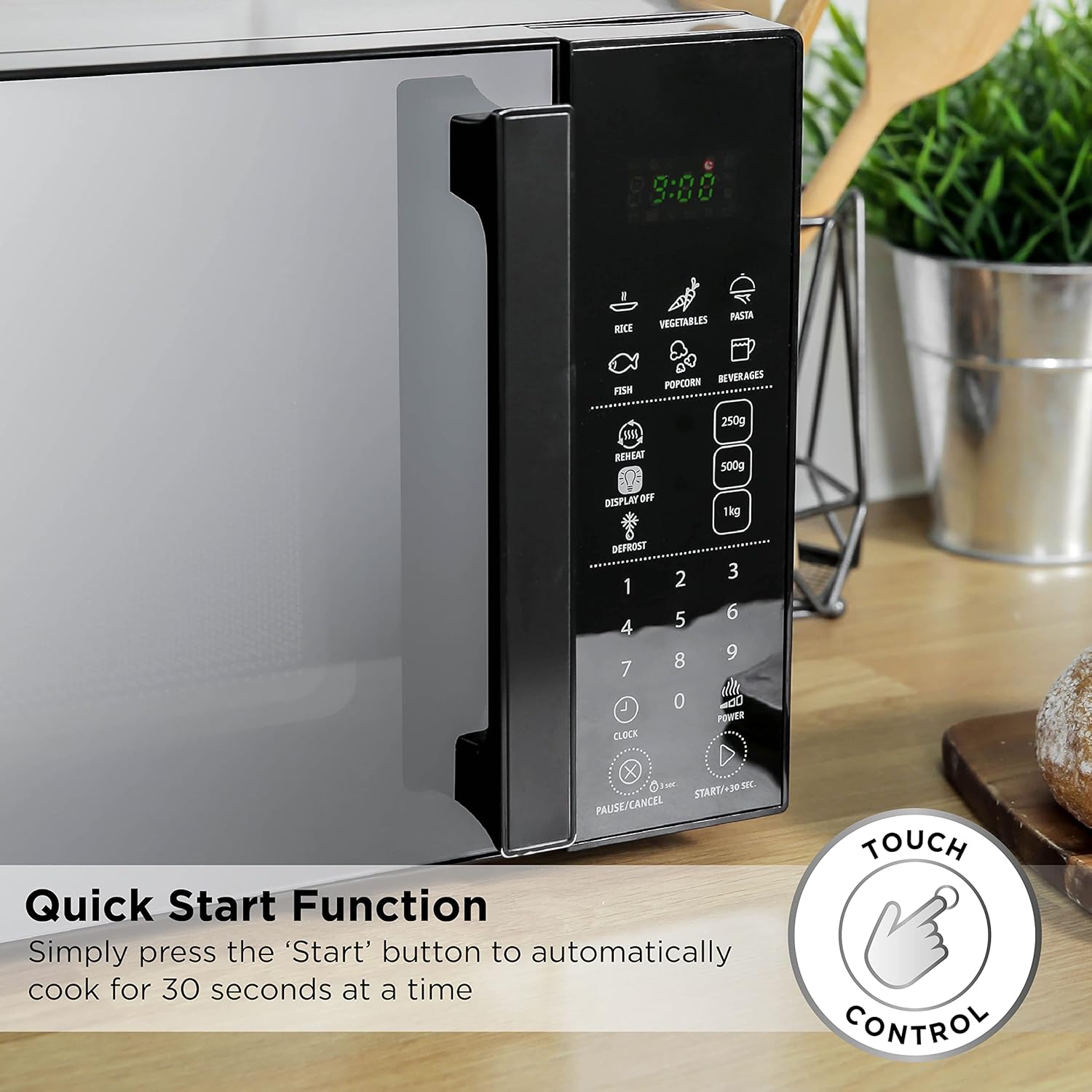 IMPRESSIVE FUNCTIONALITY – Designed with style and practicality in mind, this 20 L touch control digital microwave boasts impressive functionality, with a range of programmes to help make mealtimes easier.
