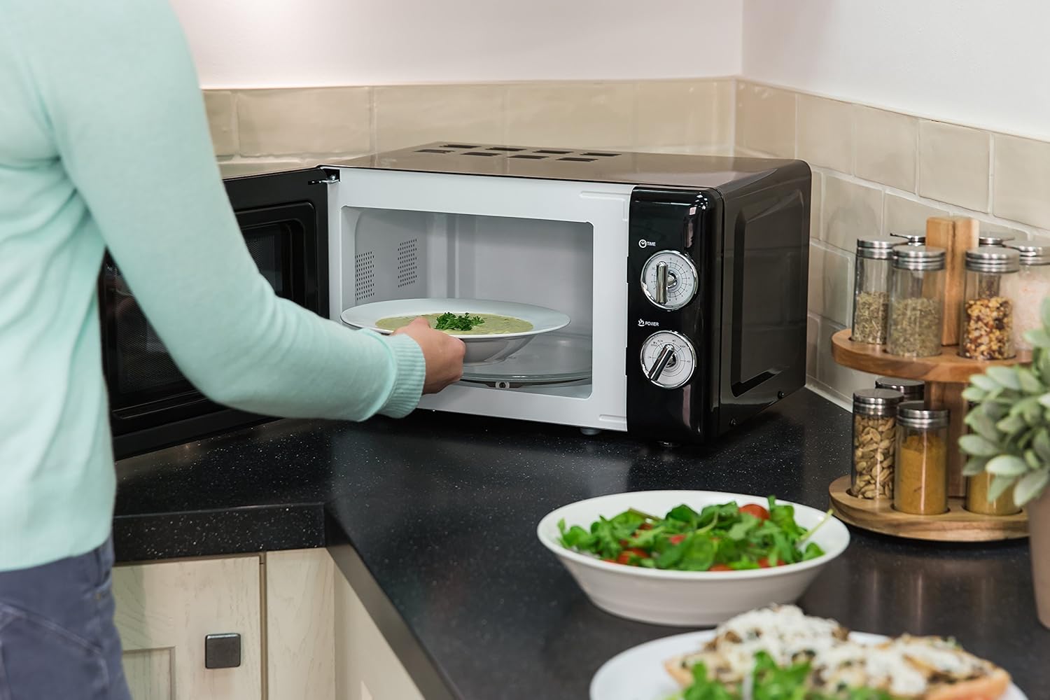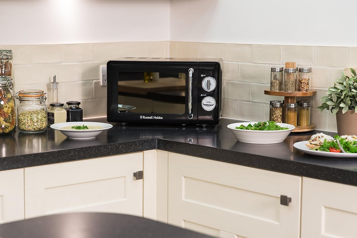 Russell Hobbs RHRETMM705B 17 L 700 W Black Compact Retro Solo Manual Microwave with 5 Power Levels, Timer, Defrost Setting, Easy Clean
